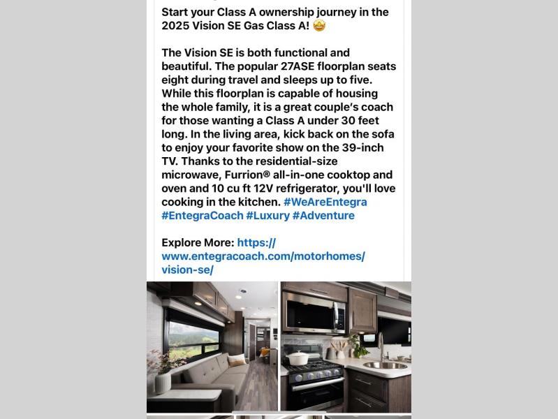 New 2025 Entegra Coach Vision 27ASE Gas Motor Home Class A