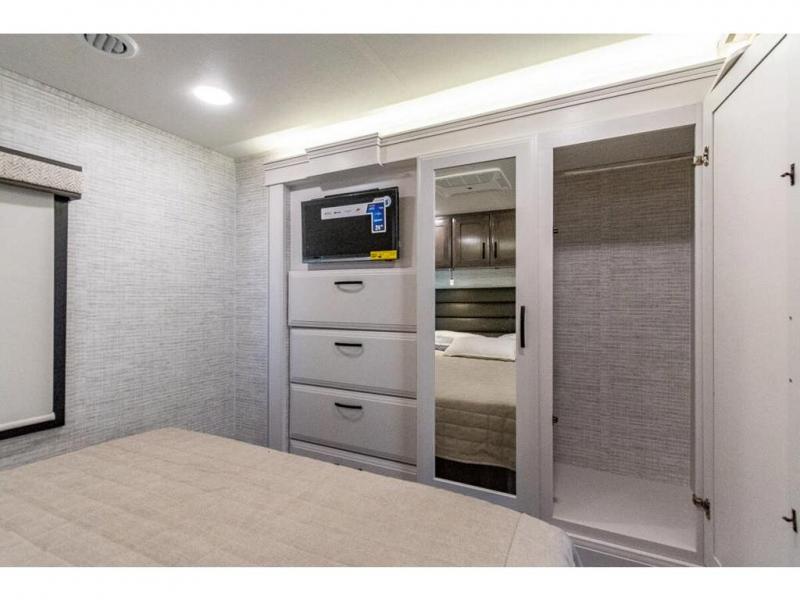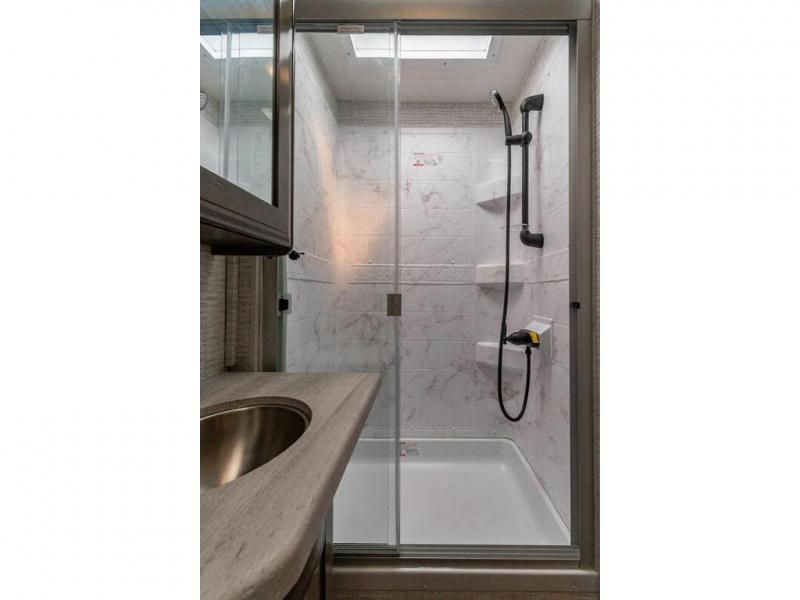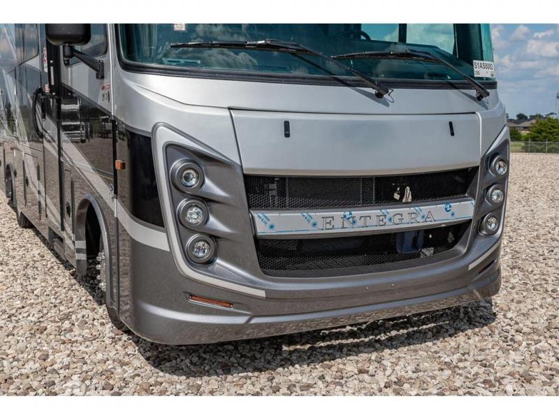 Cruise to your next luxurious camping location in any Entegra Coach Vision Class A gas motorhome! With its high-class features, the Vision makes it quite easy to create memorable and lavish getaways. The exterior comes equipped with an electric patio awning with LED lights, an outside shower, an exterior utility center, and slide out awnings. There are also lockable pass-through storage compartments, an exterior entertainment center with speakers, and a 200W solar panel with a dual controller. The 5,500W generator will provide extra convenience while the water filtration system keeps your water pure and tasting great. The E-Z DRIVE ride and handling package is another feature that is sure to spark your interest as it allows you to drive without much effort. This package includes a computer-balanced driveshaft, jounce bumpers, heavy-duty front and rear stabilizer bars, and SACHS shocks.