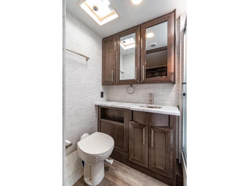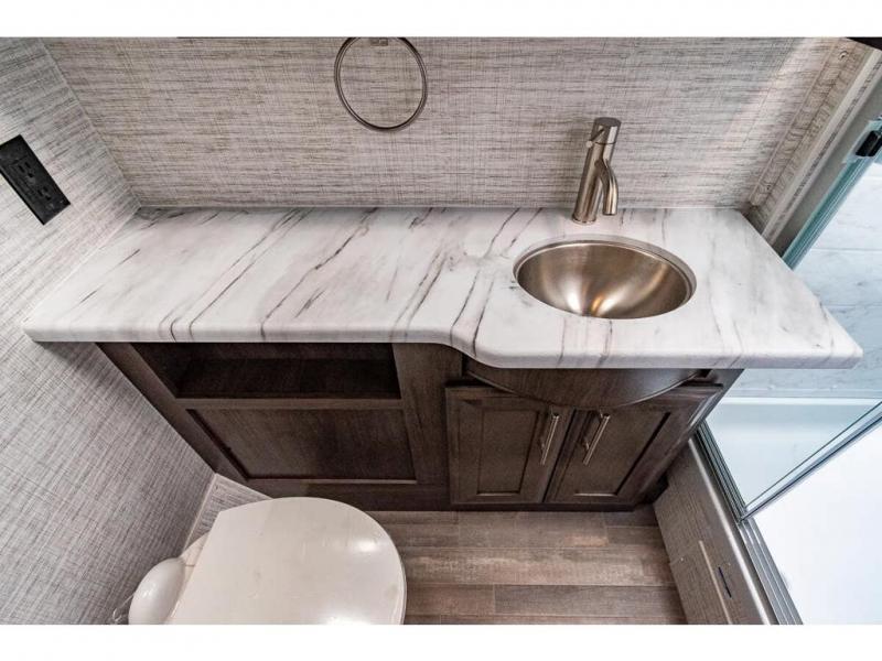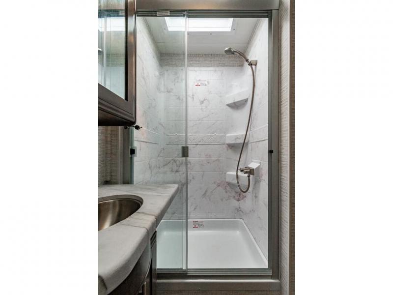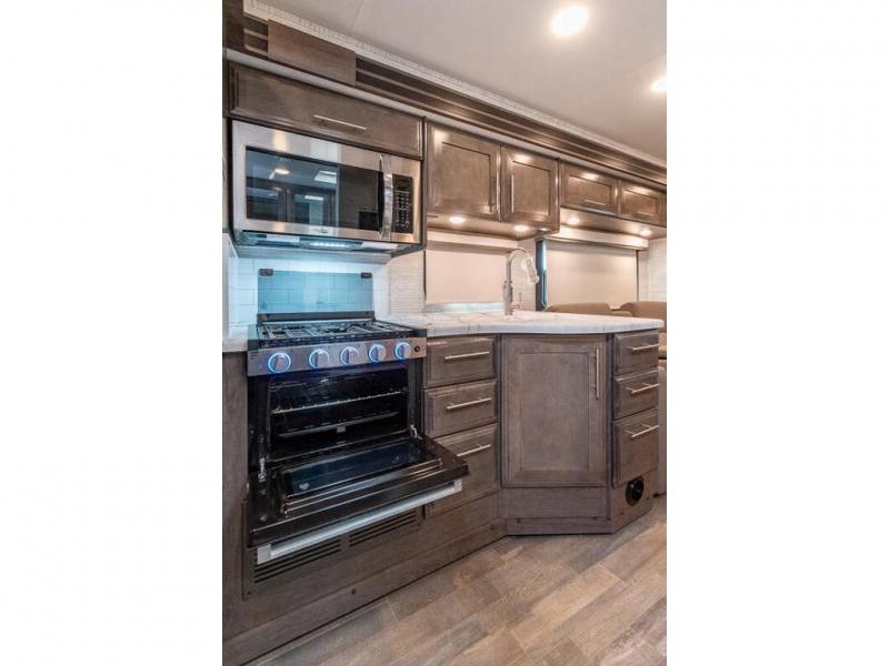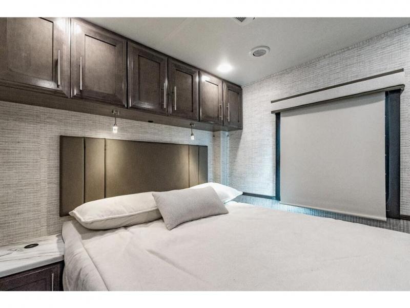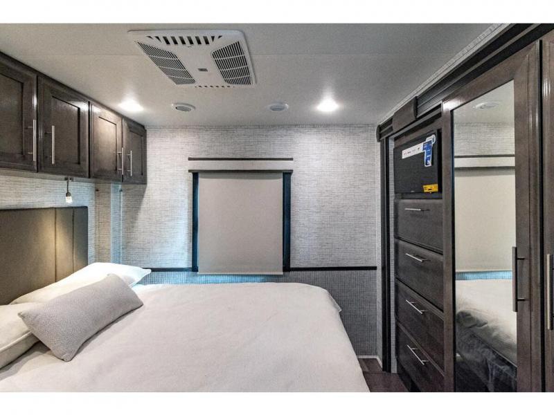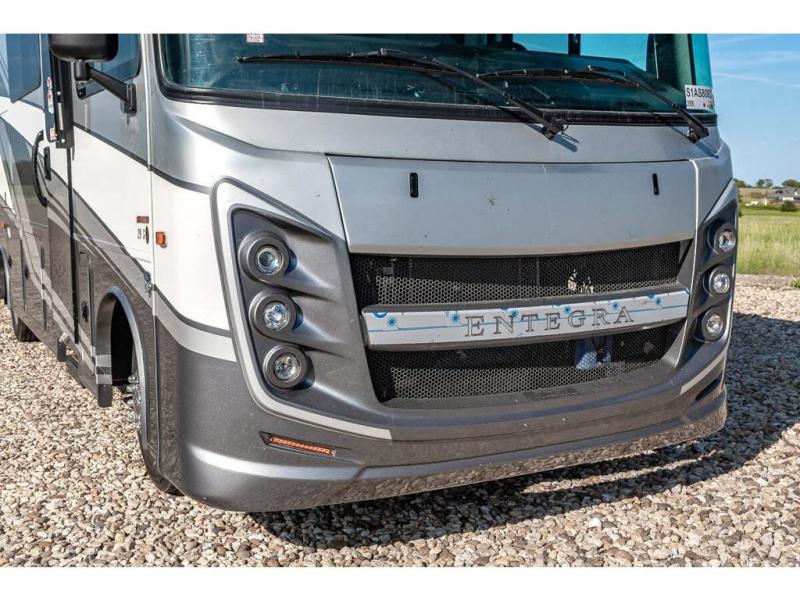 Cruise to your next luxurious camping location in any Entegra Coach Vision Class A gas motorhome! With its high-class features, the Vision makes it quite easy to create memorable and lavish getaways. The exterior comes equipped with an electric patio awning with LED lights, an outside shower, an exterior utility center, and slide out awnings. There are also lockable pass-through storage compartments, an exterior entertainment center with speakers, and a 200W solar panel with a dual controller. The 5,500W generator will provide extra convenience while the water filtration system keeps your water pure and tasting great. The E-Z DRIVE ride and handling package is another feature that is sure to spark your interest as it allows you to drive without much effort. This package includes a computer-balanced driveshaft, jounce bumpers, heavy-duty front and rear stabilizer bars, and SACHS shocks.
