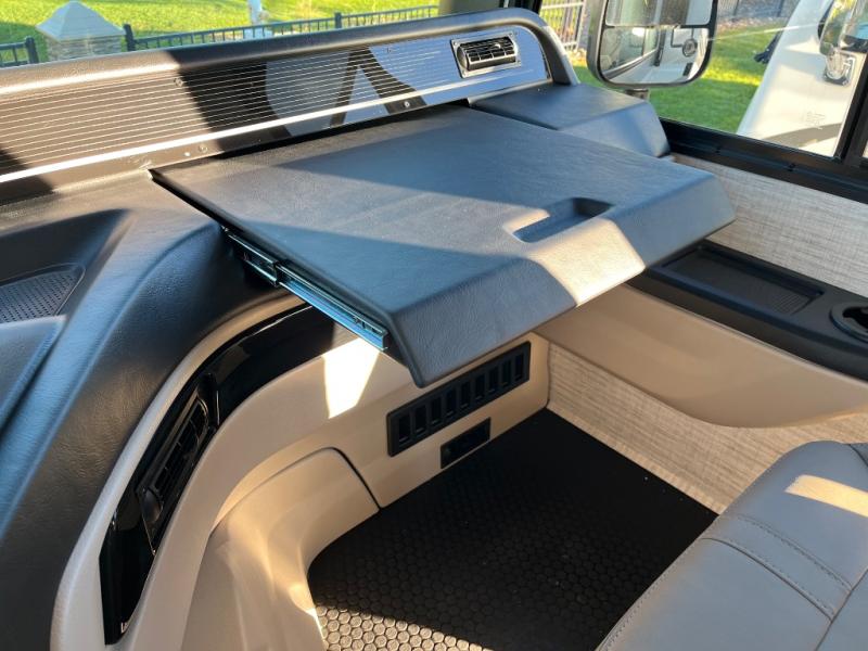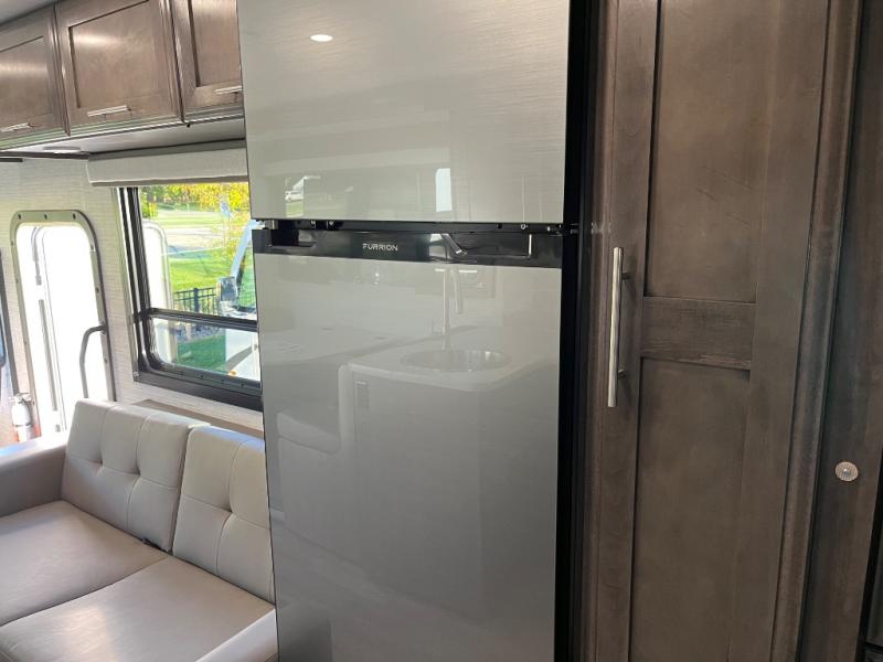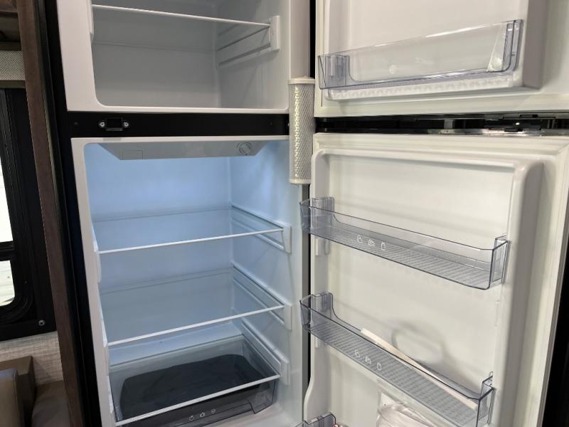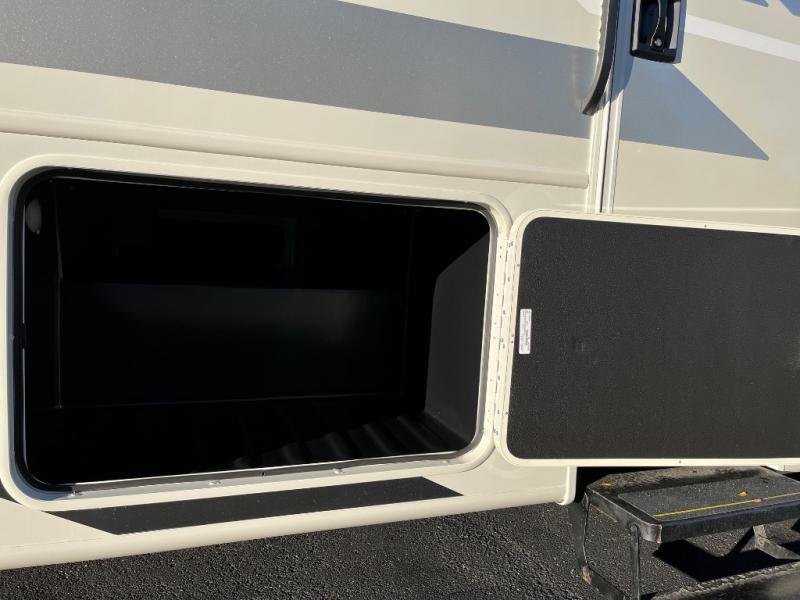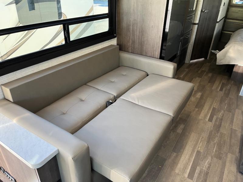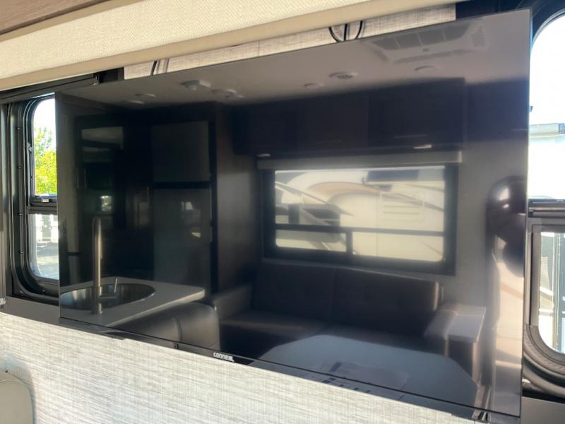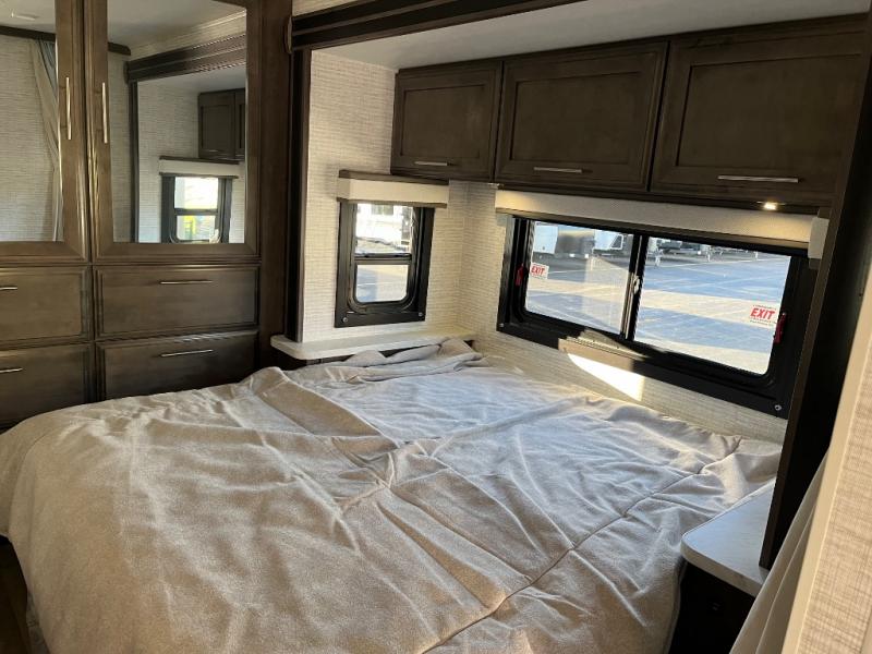 This coach is perfect for your crew of four to five, with the ability to sleep more if you choose the optional drop-down overhead bunk. Once you've arrived at your destination, the swivel captain's seats can be turned around to face the main living area so you can visit with those on the jack-knife sofa and booth dinette. A full kitchen, including a two burner cooktop and convection microwave oven will let you make meals each day, and the 10 cu. ft. 12V refrigerator will keep your food fresh. You'll love having your own space in the rear corner private bedroom that includes a king bed slide out and a spacious wardrobe. And you'll find the full bath in the other rear corner for quick and easy access at night!