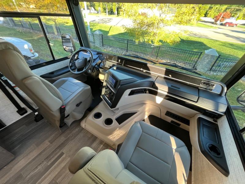 When you choose the Vision SE Class A gas motorhome by Entegra Coach, you're choosing an affordable coach packed with amenities! The Ford F53 chassis is ultra durable and the 7.3L V8 engine with 335HP will power your many adventures. There is an E-Z Drive system with a computer-balanced driveshaft, heavy-duty stabilizer bars, and more to provide you with a smooth drive, plus there is a 120 in. panoramic windshield for outstanding views as you travel. You can enjoy your coach for years to come thanks to the construction that features bead-foam insulation, a one-piece seamless crowned fiberglass roof, plus TuffShell vacuum-bond laminated sidewalls and floor. The interior will have you feeling right at home with hardwood cabinet doors and drawer fronts, a 7' ceiling height, decorative kitchen backsplash, plus a shower with decorative surround, glass door and skylight.
