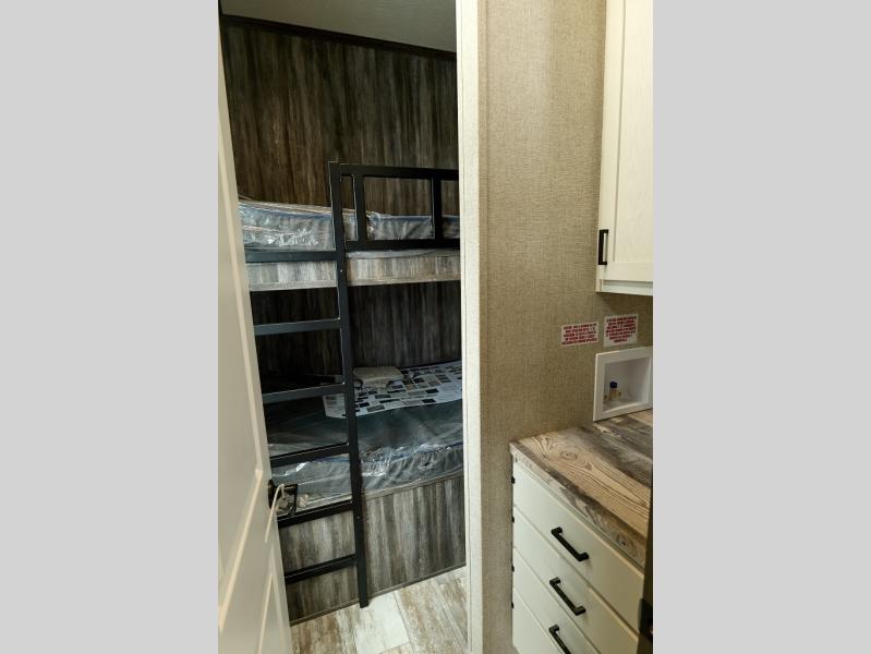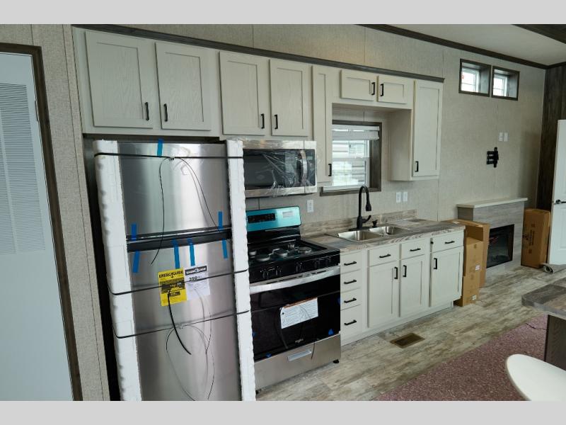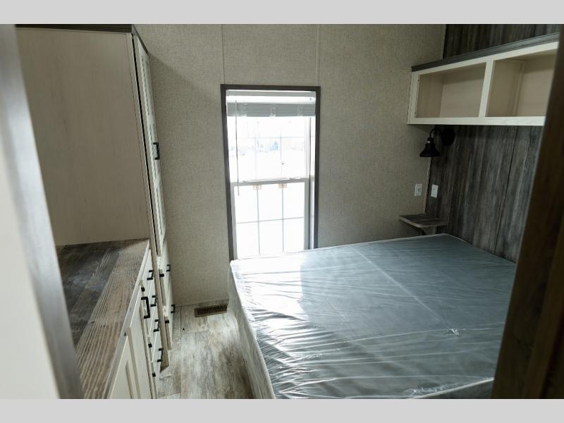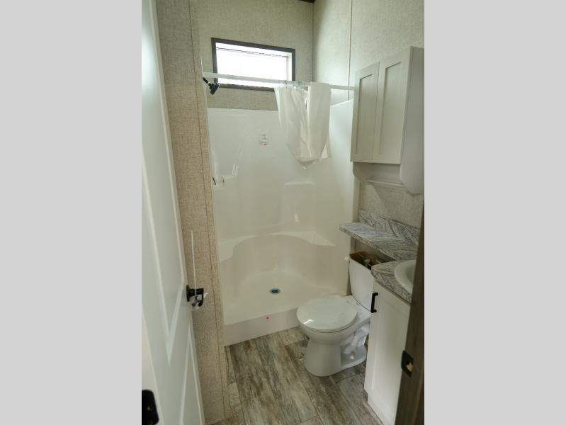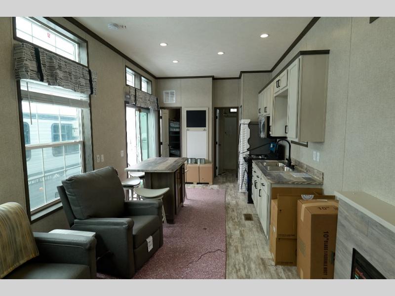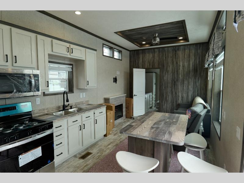 Head out to your park model today for some rest and relaxation! Whether you're lounging together in the central living area in front of the 54" floating entertainment center, or you're getting ready for bed and brushing your teeth with the residential ceramic sink in the rear bathroom, you will appreciate all of the many wonderful features that come standard in this model. Even bed time will be fun with the set of double-size bunks that are located in the rear private bunkhouse. You might even like to add the optional stacked washer/dryer option, and there are more you can choose for your specific needs.