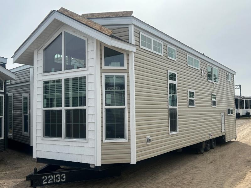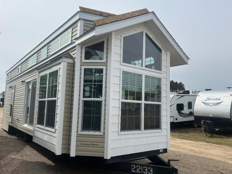 With any Country Manor park model by Fairmont you will enjoy years of use and memories thanks to the solid construction materials, such as an Owens Corning architectural shingled roof, a woven shepweave underbelly, a HomeGuard exterior weather house wrap wind barrier, and more! The Kinro windows will allow plenty of natural light in, and the residential crown molding will give that touch of luxury. Each model includes stainless steel Whirlpool appliances, high pressure dual laminated countertops and backsplash, and European style hidden cabinet hinges. These models also feature 1/2" residential textured drywall cathedral ceilings for better insulation and sound proofing, and the three decor choices will allow you to customize the interior to your liking.