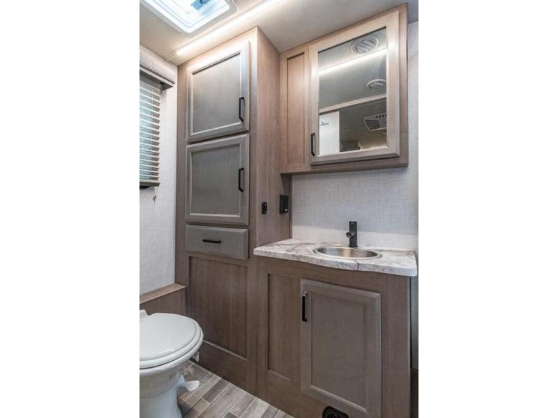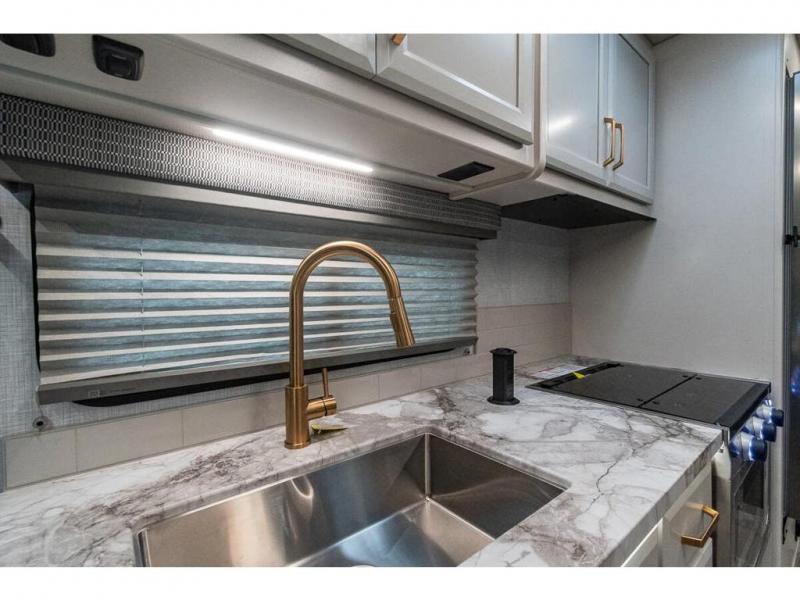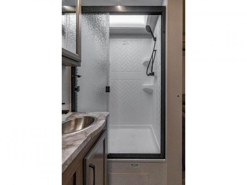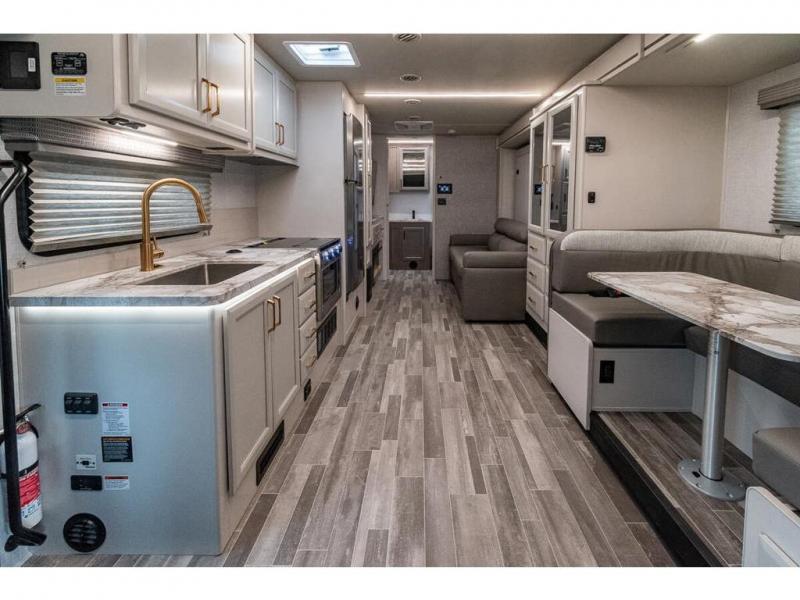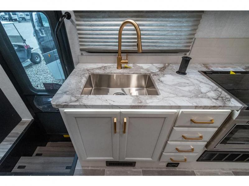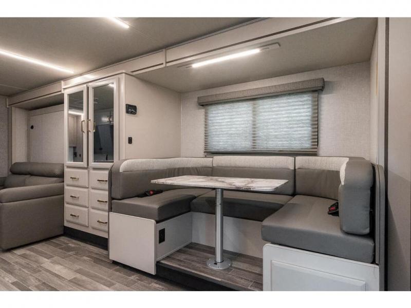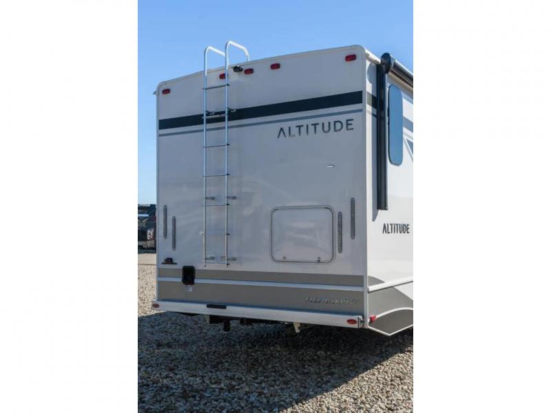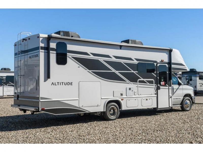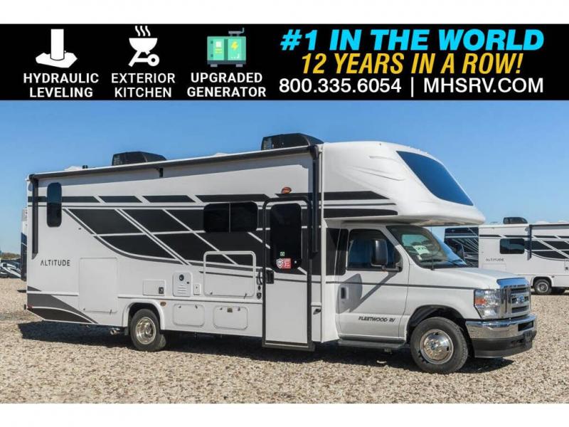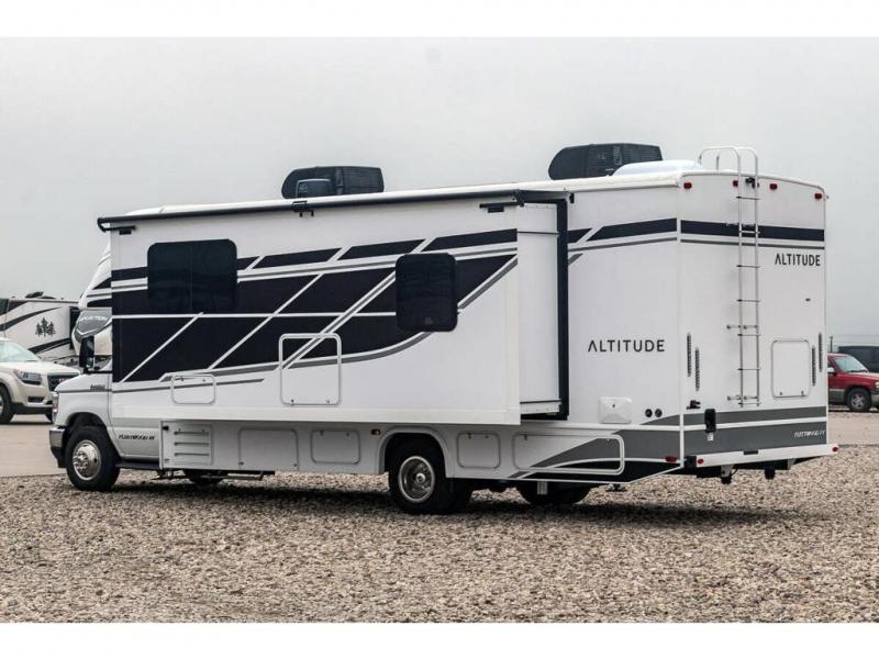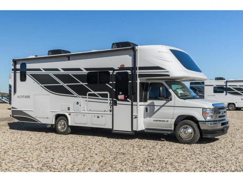 With any Altitude Class C gas motorhome by Fleetwood RV, you will enjoy unrivaled performance, unbeatable storage, and luxury at every turn! You will love the journey just as much as the destination with reclining back captain's chairs and side view cameras, plus there is a Ford 7.3L V8 engine for power you can feel. Each model features painted steel frame construction with a Powerlock System ll that interlocks the walls to the roof for added durability, along with Vacu-Bond aluminum framed sidewalls, roof, and floor. Outside, you'll find automatic hydraulic leveling jacks, patio lighting, slam latch luggage door handles, and a Winegard Air 360+ that will allow you to stay connected as you travel. Head inside to find Surf-X countertops, slide out fascia with coordinating interior wood color, hidden hinge cabinet doors, kitchen backsplash, and many more comforts!