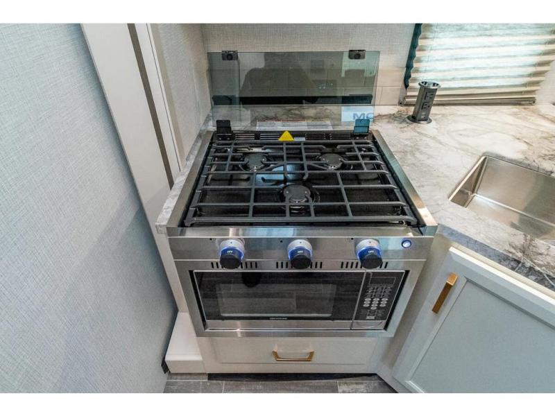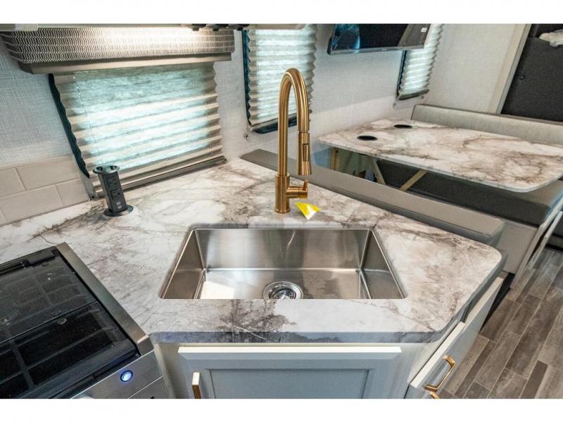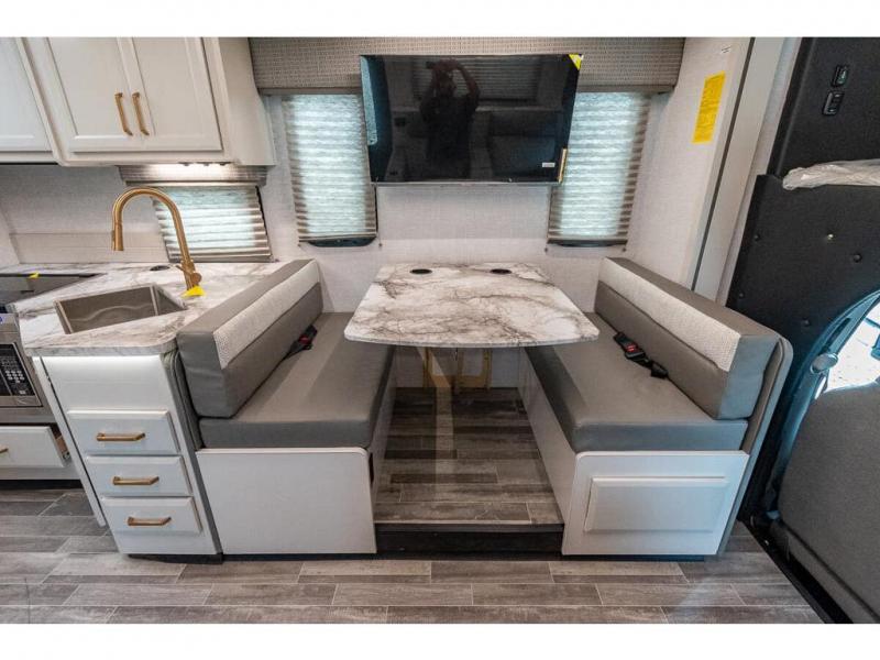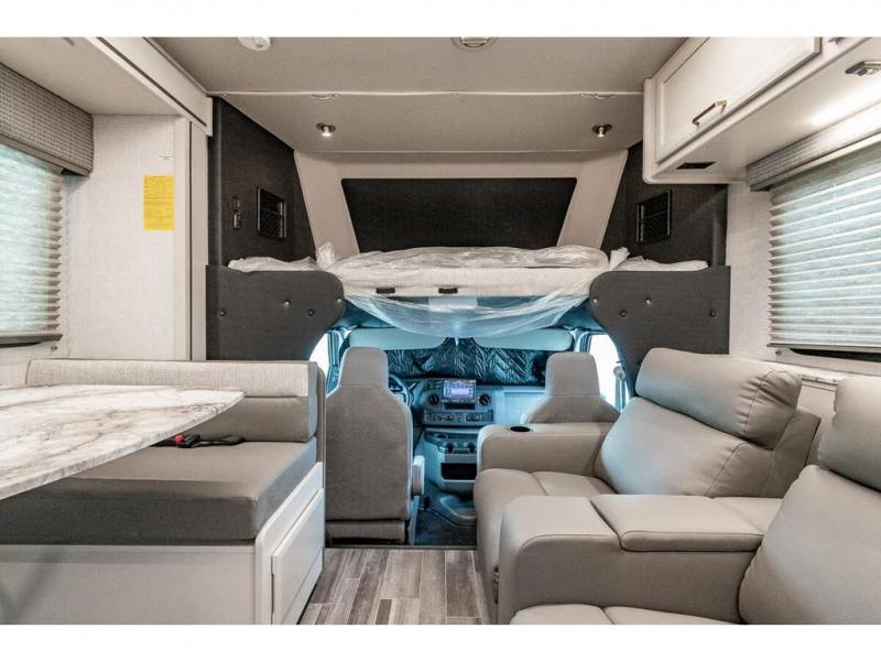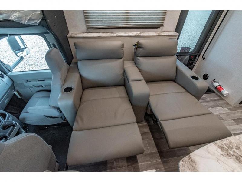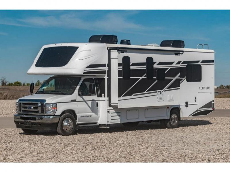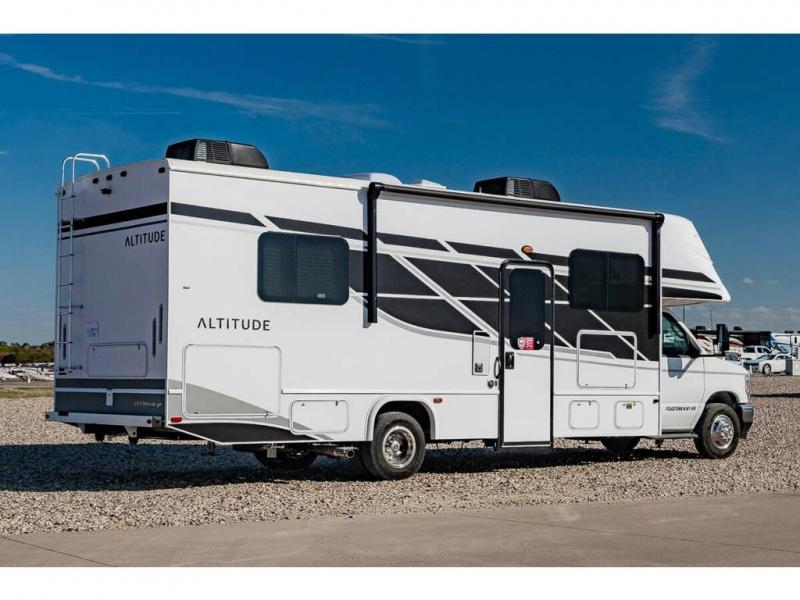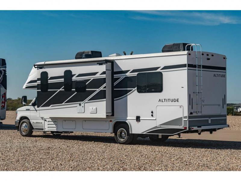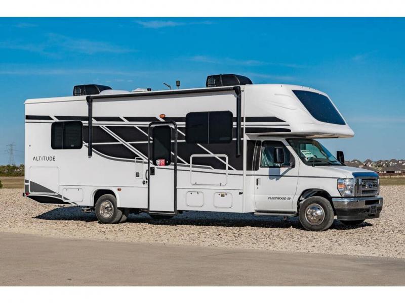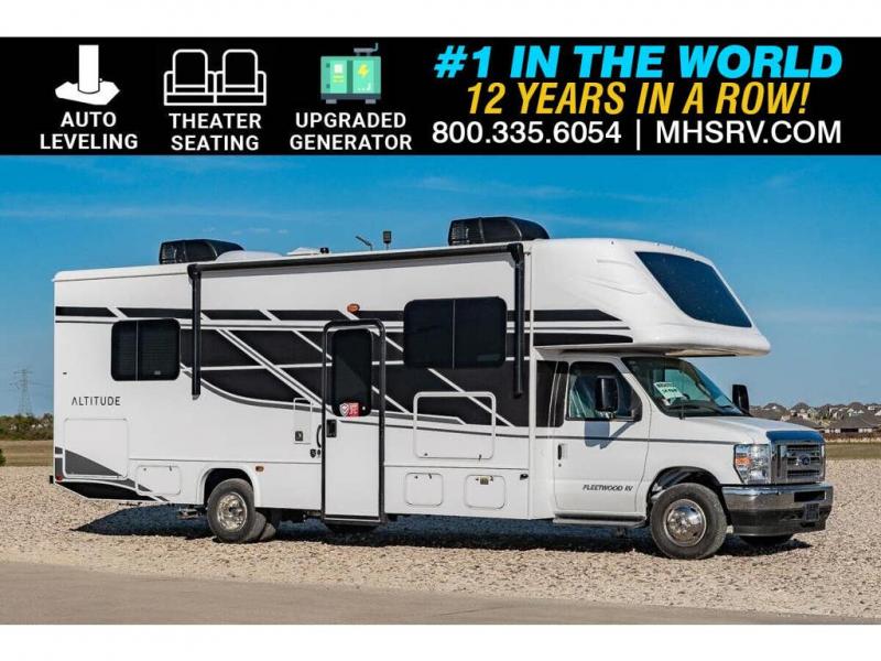 With any Altitude Class C gas motorhome by Fleetwood RV, you will enjoy unrivaled performance, unbeatable storage, and luxury at every turn! You will love the journey just as much as the destination with reclining back captain's chairs and side view cameras, plus there is a Ford 7.3L V8 engine for power you can feel. Each model features painted steel frame construction with a Powerlock System ll that interlocks the walls to the roof for added durability, along with Vacu-Bond aluminum framed sidewalls, roof, and floor. Outside, you'll find automatic hydraulic leveling jacks, patio lighting, slam latch luggage door handles, and a Winegard Air 360+ that will allow you to stay connected as you travel. Head inside to find Surf-X countertops, slide out fascia with coordinating interior wood color, hidden hinge cabinet doors, kitchen backsplash, and many more comforts!