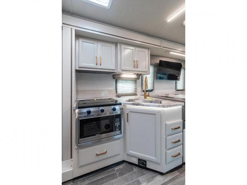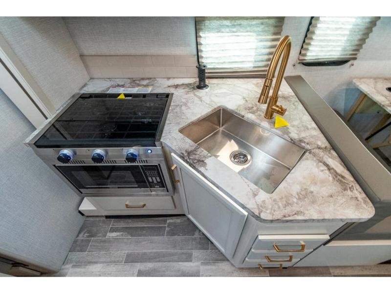 You can't go wrong when you choose this single slide out coach for five to six! Once you park for the day, you can unload the exterior pass-thru storage, then stretch your legs around the campground. A three burner range/convection microwave combo will let you whip up lunch once everyone is hungry, and you'll find seating space on the Dream Dinette and jack knife sofa. These both can double as sleeping space for guests, along with the overhead bunk. And the rear private bedroom with a 60" x 75" queen bed will make you feel right at home!