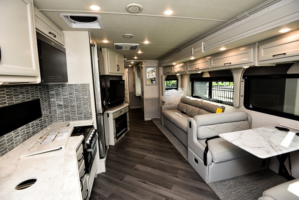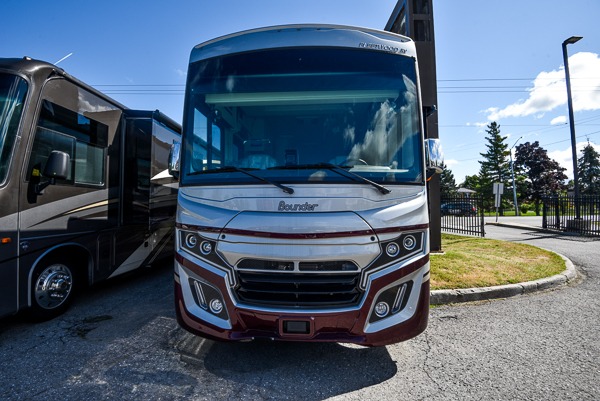 With any Bounder Class A gas motorhome by Fleetwood, you can travel in luxury and style with the power you desire to enjoy the ride as much as the destination. Beginning with the Power Platform Ford chassis, the enhanced safety features such as remote, power-heated mirrors with turn indicators and side cameras, and the color monitor for side and rear cameras, traveling is made easy. There is also an automotive one-piece windshield, a 100W solar panel, and WiFi Ranger Sky4 that come standard. A 5.5kW Onan generator will keep you powered up and you'll find plenty of storage both inside and out for personal belongings, camp gear, and more. Inside you will love the look of the durable, hand-laid Tarkett flooring, the energy efficient LED flush mount ceiling lighting, and the fiberglass shower with a glass door. Choose a Bounder Class A gas coach to discover even more stand-out features!