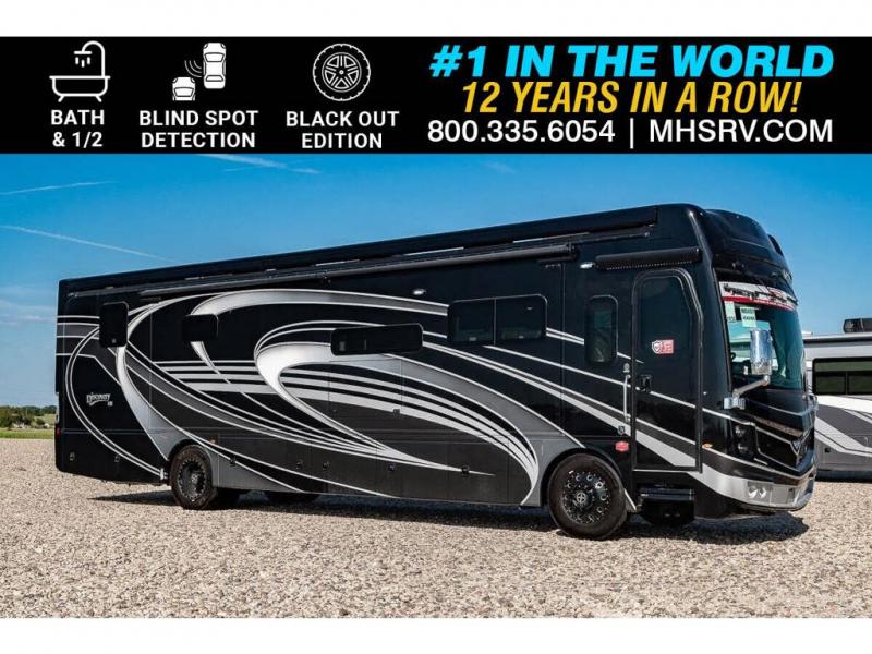 MSRP $580,018. New 2025 Fleetwood Discovery LXE 40M Bath & 1/2 for sale at Motor Home Specialist; the #1 Volume Selling Motor Home Dealership in the World. This Beautiful RV is approximately 40 feet 1 inches in length and features 3 slides including a full-wall slide, king bed, fireplace, Cummins L9 diesel engine, Freightliner Freedom Bridge Custom Chassis, Allison 3000 MH transmission, tire pressure monitoring system, heated fresh water and holding tank compartments, molded-fiberglass one-piece roof, automatic hydraulic leveling jacks, 7-way round tow connection, automotive one piece windshield and large living area. This exclusive RV features the optional Oceanfront Collection, mid ship TV, drop down twin bed, motion power lounge, rear roof mounted patio awning, A/Cs with condensation pumps, blind spot detection, exterior freezer, window awning package, 2nd full basement tray, tech package, and heated tile floor. For additional details on this unit and our entire inventory including brochures, window sticker, videos, photos, reviews & testimonials as well as additional information about Motor Home Specialist and our manufacturers please visit us at MHSRV.com or call 800-335-6054. At Motor Home Specialist, we DO NOT charge any prep or orientation fees like you will find at other dealerships. All sale prices include a 200-point inspection, interior & exterior wash, detail service and a fully automated high-pressure rain booth test and coach wash that is a standout service unlike that of any other in the industry. You will also receive a thorough coach orientation with an MHSRV technician, a night stay in our delivery park featuring landscaped and covered pads with full hook-ups and much more! Read Thousands upon Thousands of 5-Star Reviews at MHSRV.com and See What They Had to Say About Their Experience at Motor Home Specialist. WHY PAY MORE? WHY SETTLE FOR LESS?