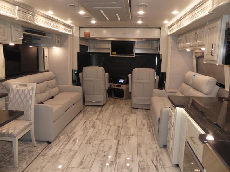The Discovery LXE Class A diesel motorhomes by Fleetwood RV features a Freightliner XCM chassis for the ultimate in power, storage, and drivability. The swivel, recline, and heated captain's seats provide comfort at every turn, and you'll have an OptiView instrument panel, color backup monitor, and tuned SACHS® shocks for your peace of mind. Each coach includes full pass-through basement storage, automatic hydraulic leveling jacks, a four-color premier full-body paint, and automatic entrance steps to name a few exterior comforts. The interior will have you feeling right at home with its porcelain tile flooring, floor heat in the living area, hardwood cabinetry, and polished solid surface galley countertop with lighting.