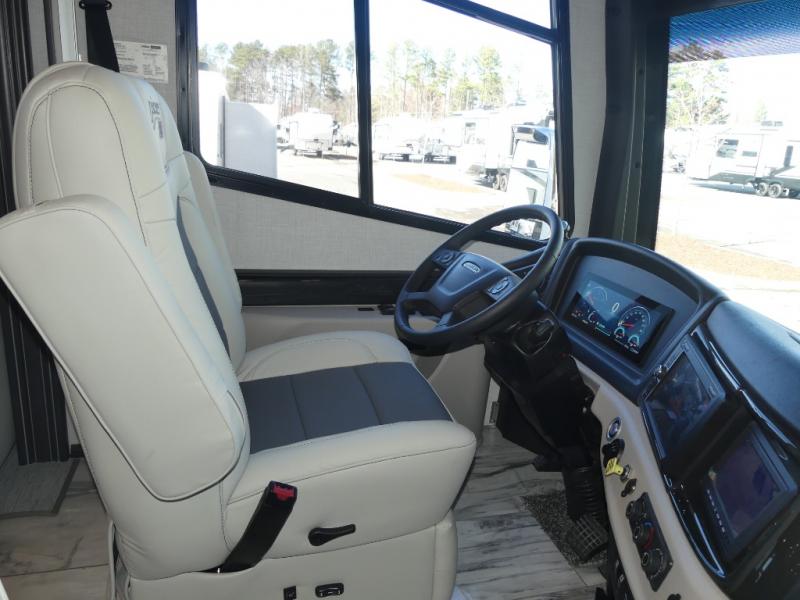 The Discovery LXE Class A diesel motorhomes by Fleetwood RV features a Freightliner XCM chassis for the ultimate in power, storage, and drivability. The swivel, recline, and heated captain's seats provide comfort at every turn, and you'll have an OptiView instrument panel, color backup monitor, and tuned SACHS® shocks for your peace of mind. Each coach includes full pass-through basement storage, automatic hydraulic leveling jacks, a four-color premier full-body paint, and automatic entrance steps to name a few exterior comforts. The interior will have you feeling right at home with its porcelain tile flooring, floor heat in the living area, hardwood cabinetry, and polished solid surface galley countertop with lighting.