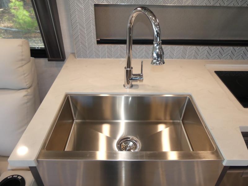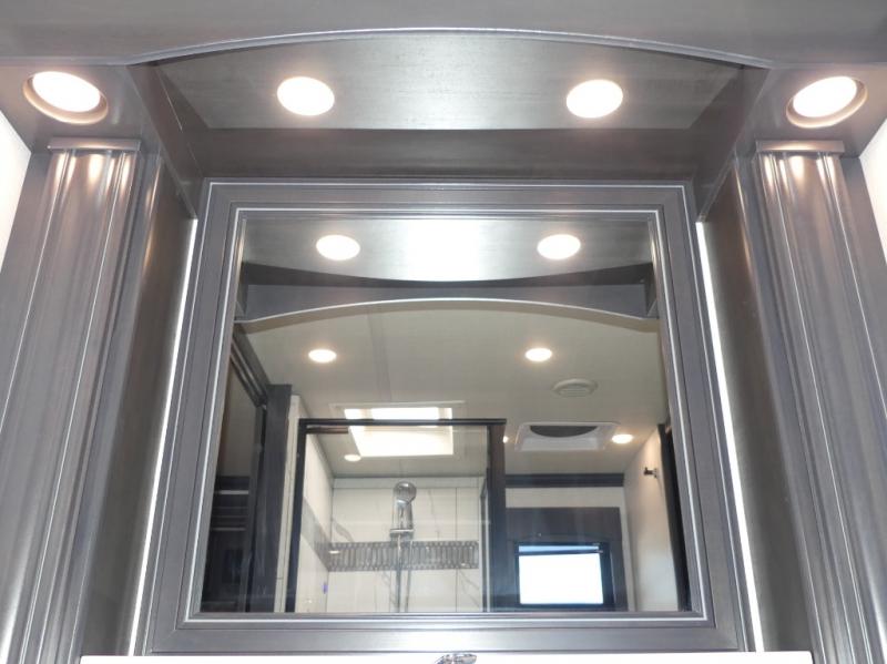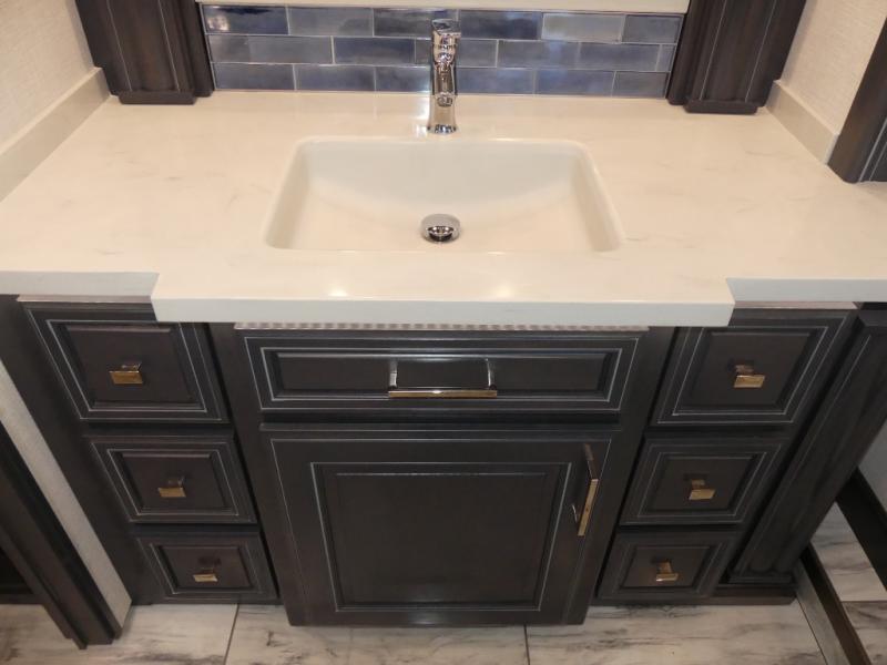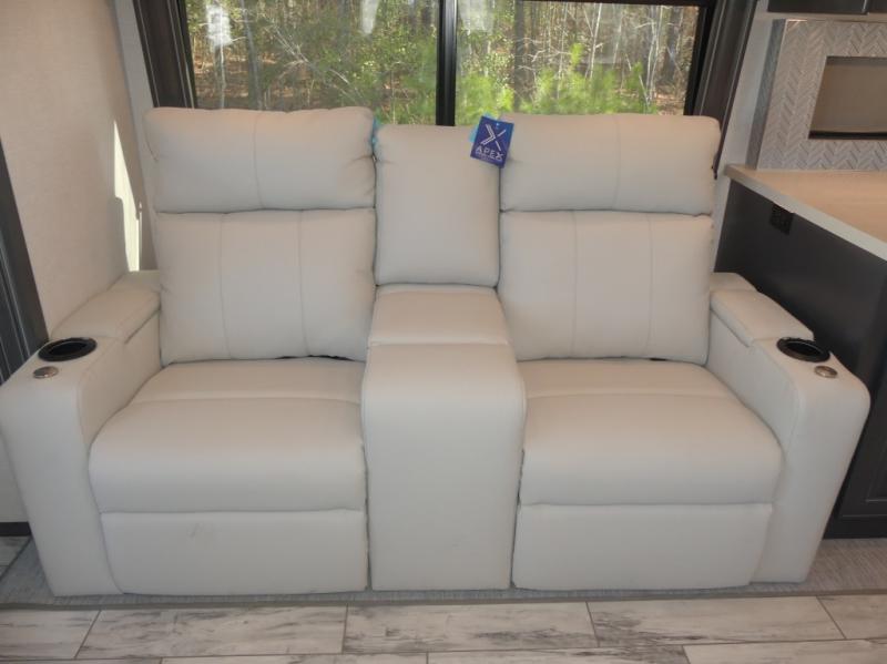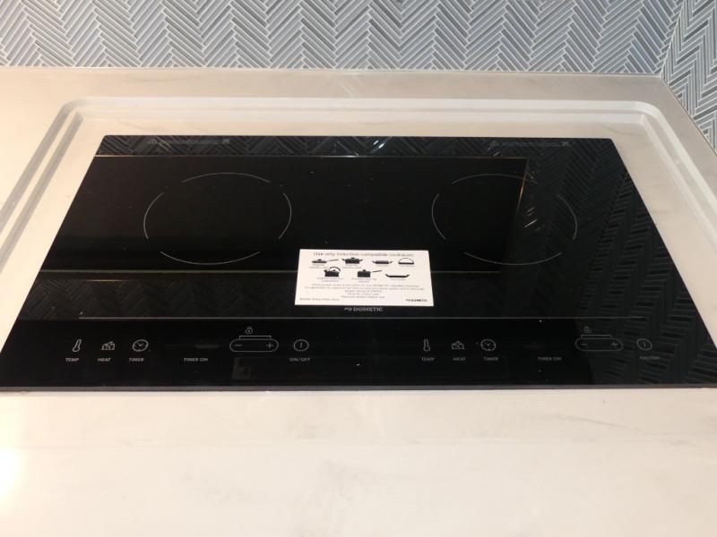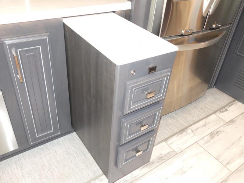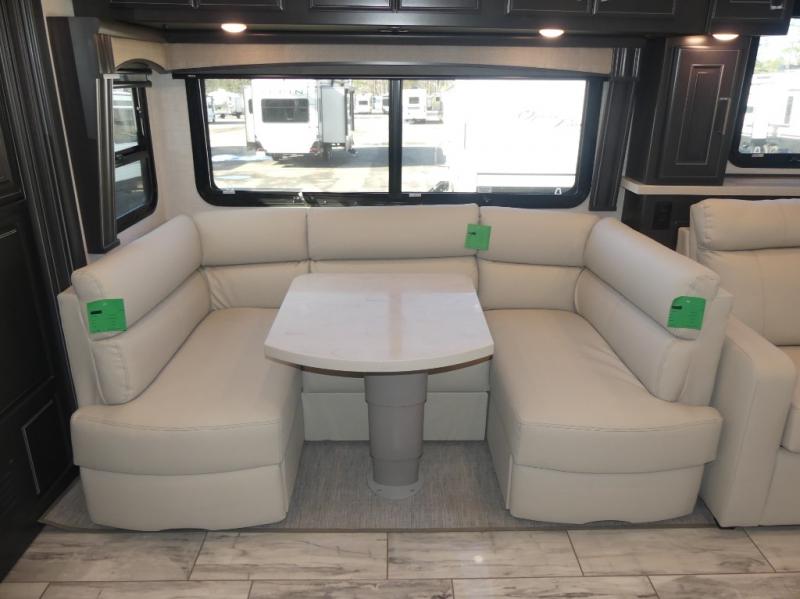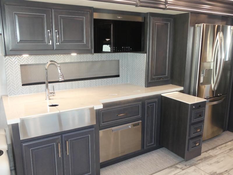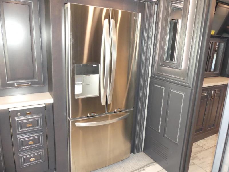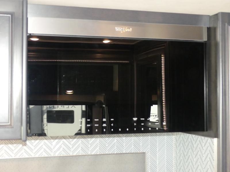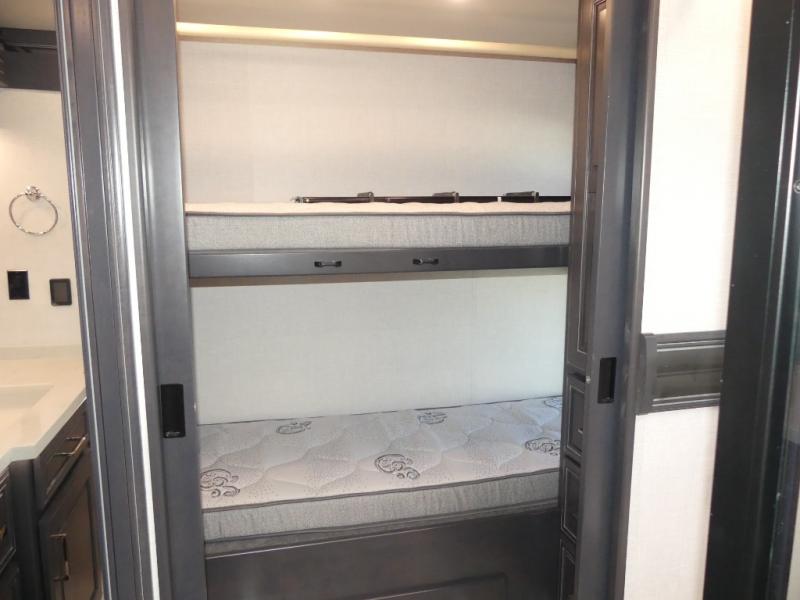 Trips across the country just got sweeter in this four slide out coach that can sleep nine people each night. The rear bunk beds can convert to a wardrobe, and there additional storage here for clothes and belongings. The master bedroom features a LED TV, a side-by-side washer and dryer, and a luxurious Encore Series king bed. This Discovery LXE includes everything you need each day to prepare meals for your crew, including a two burner induction cooktop, a convection microwave, plus a residential refrigerator with ice and water in the door. There are plenty of seating spaces to enjoy, including a U-shaped dinette, a sofa sleeper with a pull-out queen bed, and theater seats.