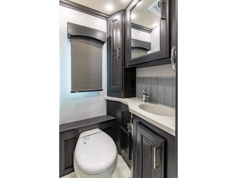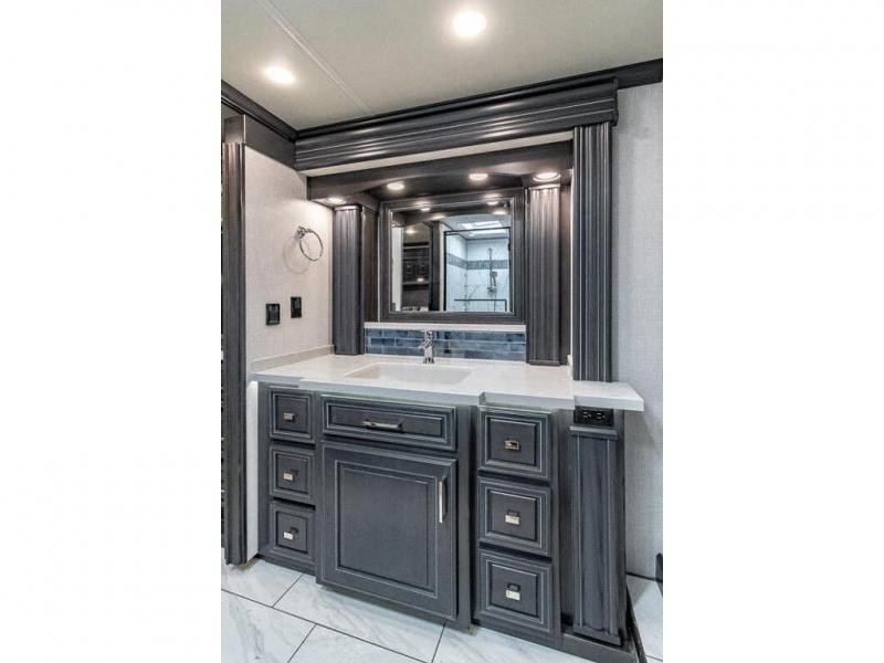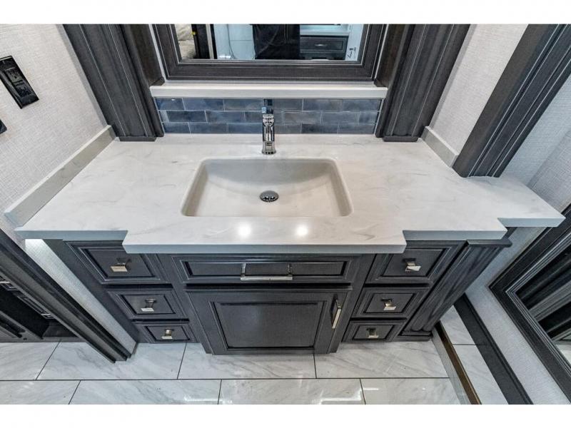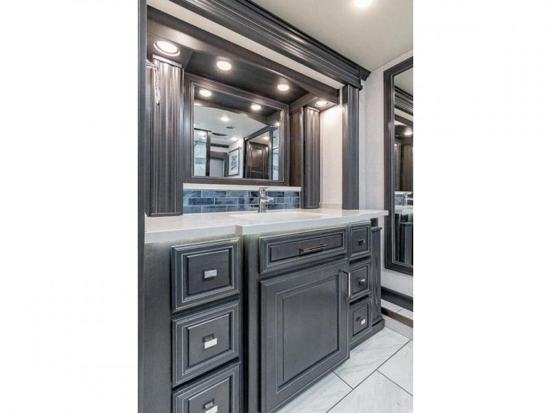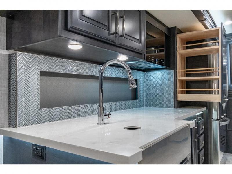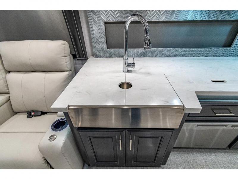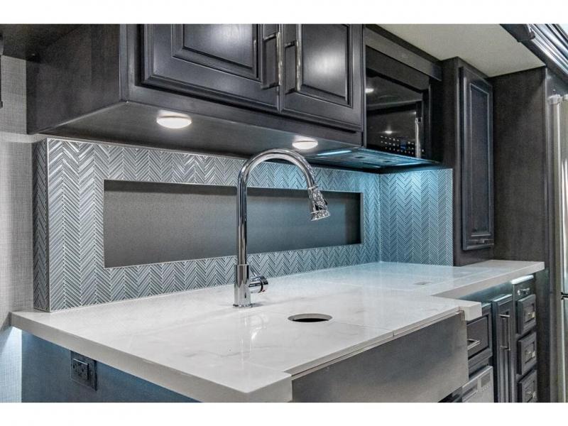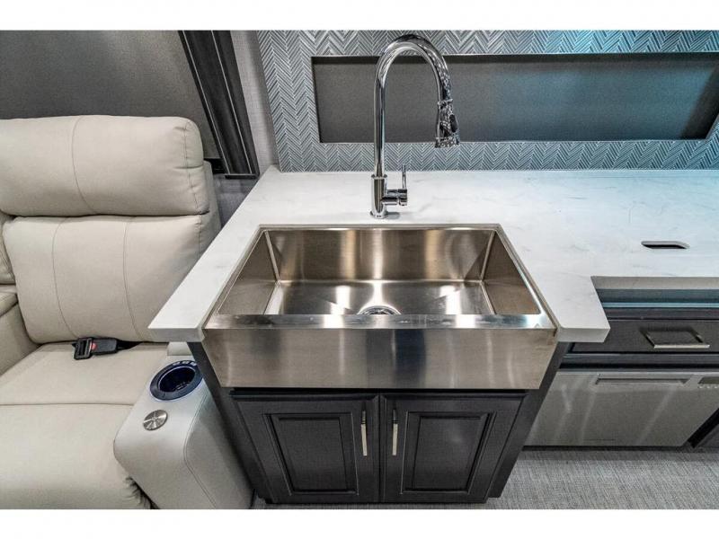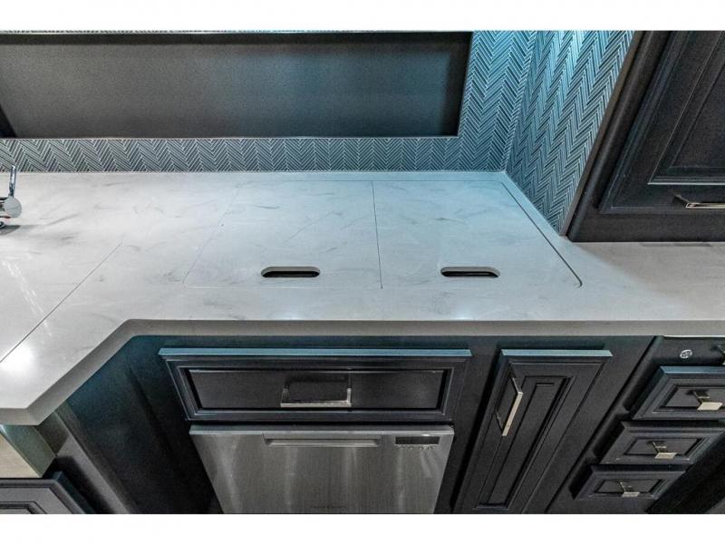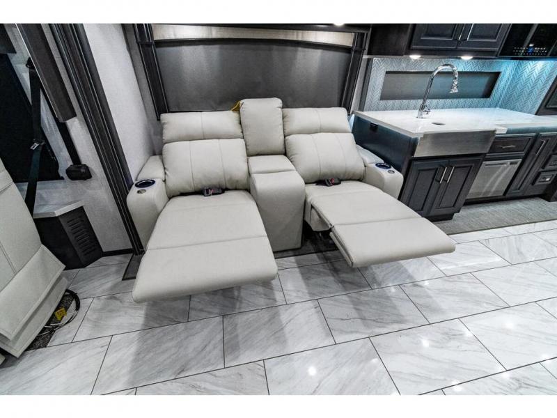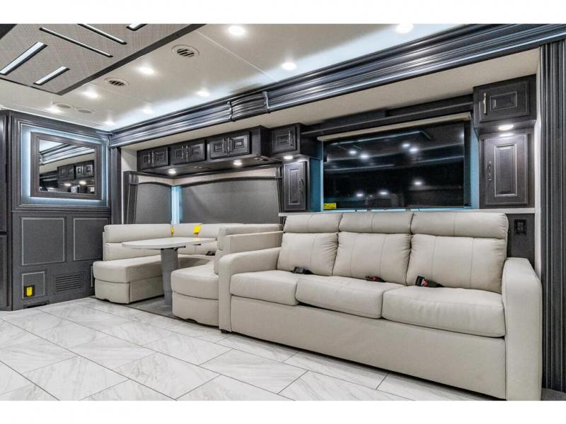 Trips across the country just got sweeter in this four slide out coach that can sleep nine people each night. The rear bunk beds can convert to a wardrobe, and there additional storage here for clothes and belongings. The master bedroom features a LED TV, a side-by-side washer and dryer, and a luxurious Encore Series king bed. This Discovery LXE includes everything you need each day to prepare meals for your crew, including a two burner induction cooktop, a convection microwave, plus a residential refrigerator with ice and water in the door. There are plenty of seating spaces to enjoy, including a U-shaped dinette, a sofa sleeper with a pull-out queen bed, and a sofa with ottomans!