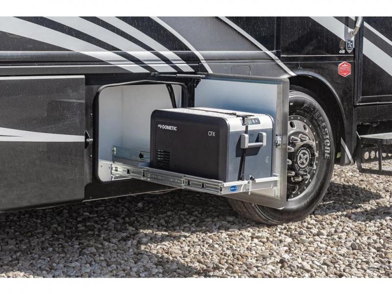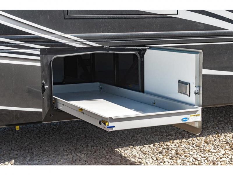 The Discovery LXE Class A diesel motorhomes by Fleetwood RV features a Freightliner XCM chassis for the ultimate in power, storage, and drivability. The swivel, recline, and heated captain's seats provide comfort at every turn, and you'll have an OptiView instrument panel, color backup monitor, and tuned SACHS® shocks for your peace of mind. Each coach includes full pass-through basement storage, automatic hydraulic leveling jacks, a four-color premier full-body paint, and automatic entrance steps to name a few exterior comforts. The interior will have you feeling right at home with its porcelain tile flooring, floor heat in the living area, hardwood cabinetry, and polished solid surface galley countertop with lighting. You can further customize your Discovery LXE coach by adding one or more of the many options offered, like the optional Hide-A-Loft power drop-down bunk, the optional Winegard In Motion satellite, or the second roof mounted awning!