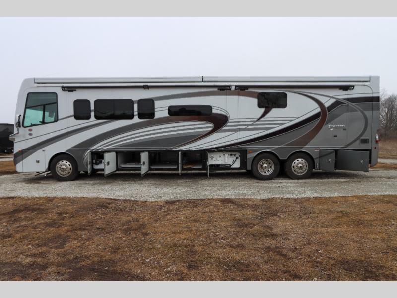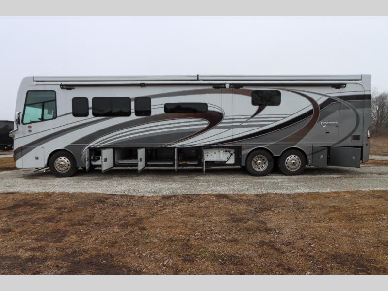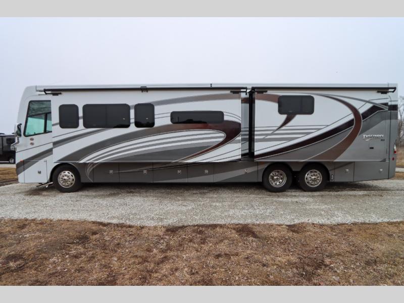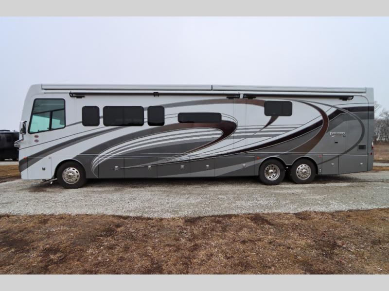 The Discovery LXE Class A diesel motorhomes by Fleetwood RV features a Freightliner XCM chassis for the ultimate in power, storage, and drivability. The swivel, recline, and heated captain's seats provide comfort at every turn, and you'll have an OptiView instrument panel, color backup monitor, and tuned SACHS® shocks for your peace of mind. Each coach includes full pass-through basement storage, automatic hydraulic leveling jacks, a four-color premier full-body paint, and automatic entrance steps to name a few exterior comforts. The interior will have you feeling right at home with its porcelain tile flooring, floor heat in the living area, hardwood cabinetry, and polished solid surface galley countertop with lighting. You can further customize your Discovery LXE coach by adding one or more of the many options offered, like the optional Hide-A-Loft power drop-down bunk, the optional Winegard In Motion satellite, or the second roof mounted awning!