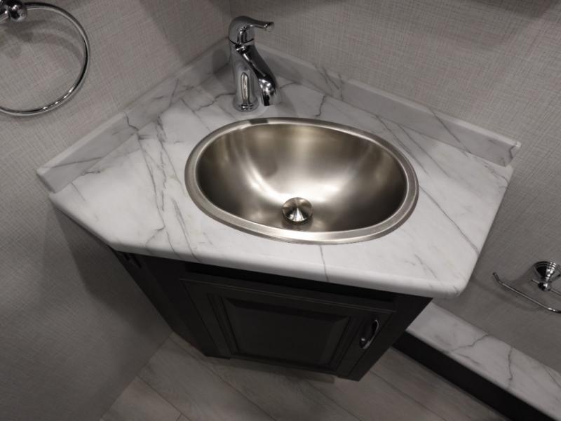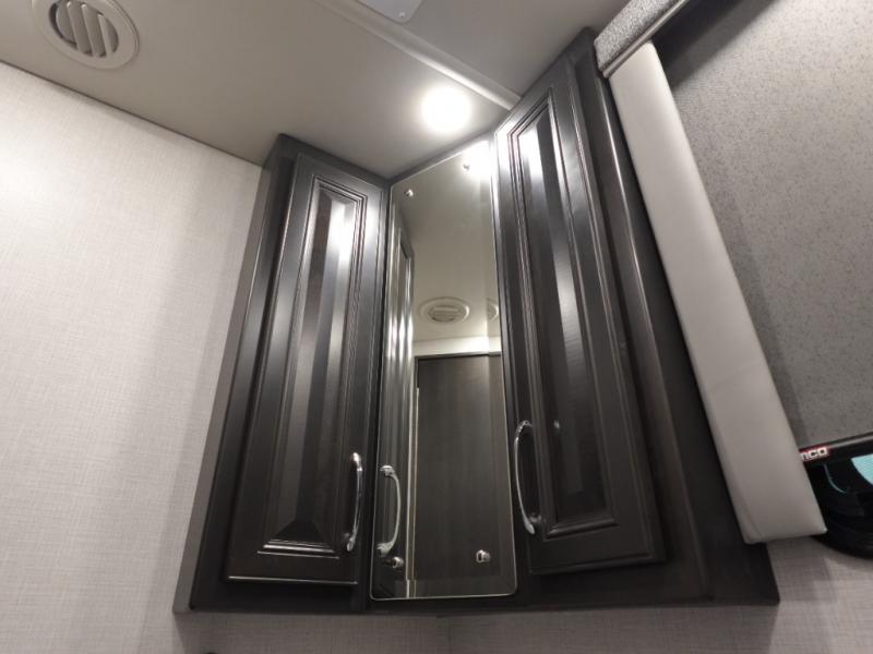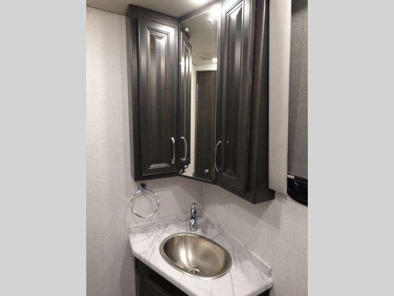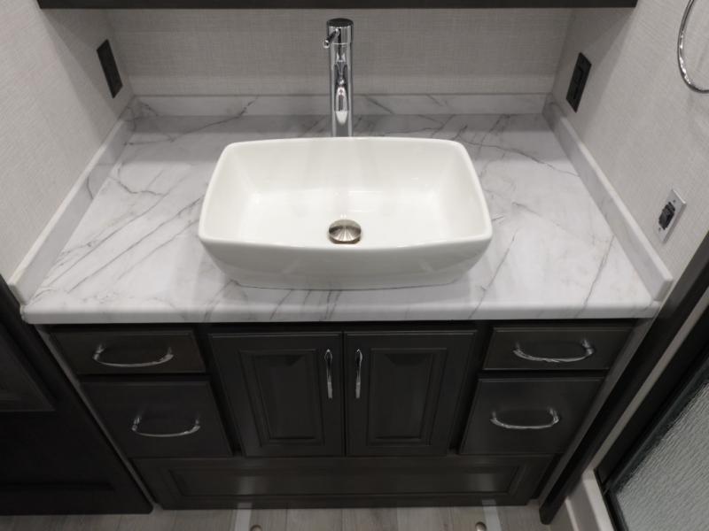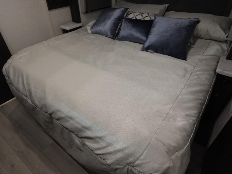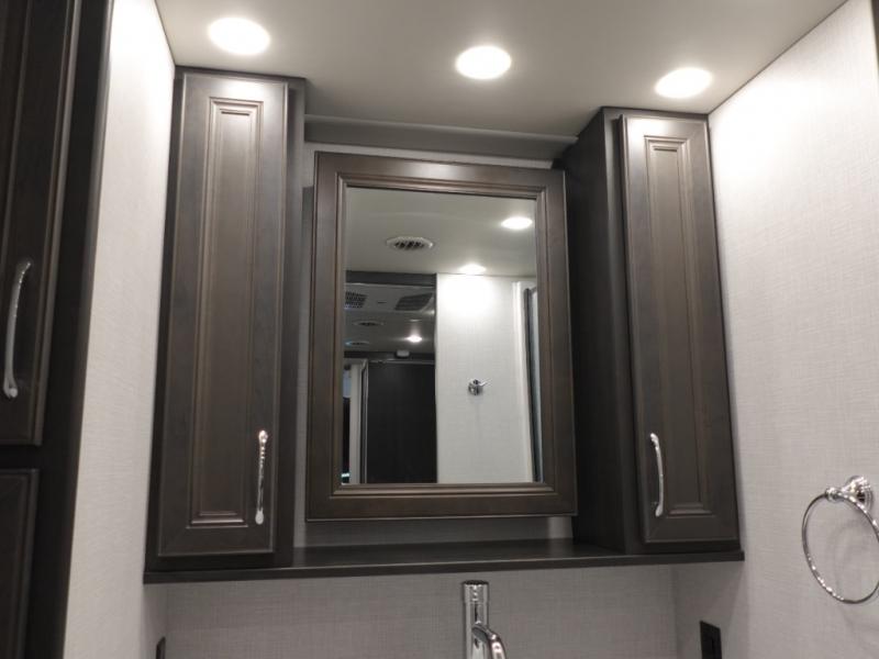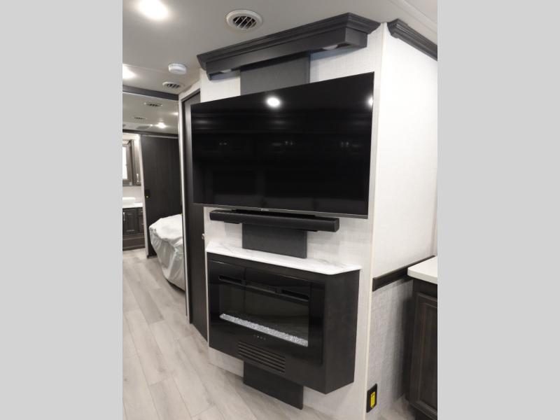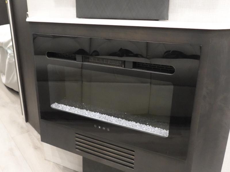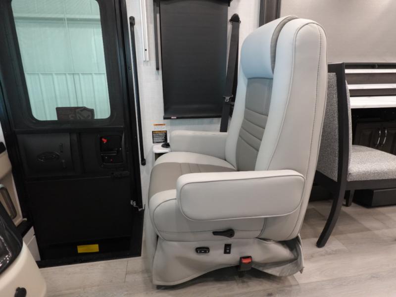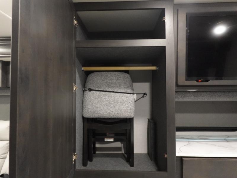 Whether you decide to travel with family or to see friends while you work along the way, this coach offers triple slide outs giving everyone plenty of space to relax, work, or sleep as well as have fun entertaining other RVers. The master suite offers a walk-around Encore Series king bed with double wardrobes/dressers and an LED TV plus a rear full bathroom including a large 50" x 28" shower with a seat. The kids or your guests will have a half bath conveniently located mid-coach. In the main living area you all can watch the LED TV with a cozy fireplace below while sitting on the sofa with two theater seats and the Adap-table dinette and breakfast bar which you might decide to work from as well. And the cook will have full amenities including a convection microwave and residential refrigerator to keep everyone fed.