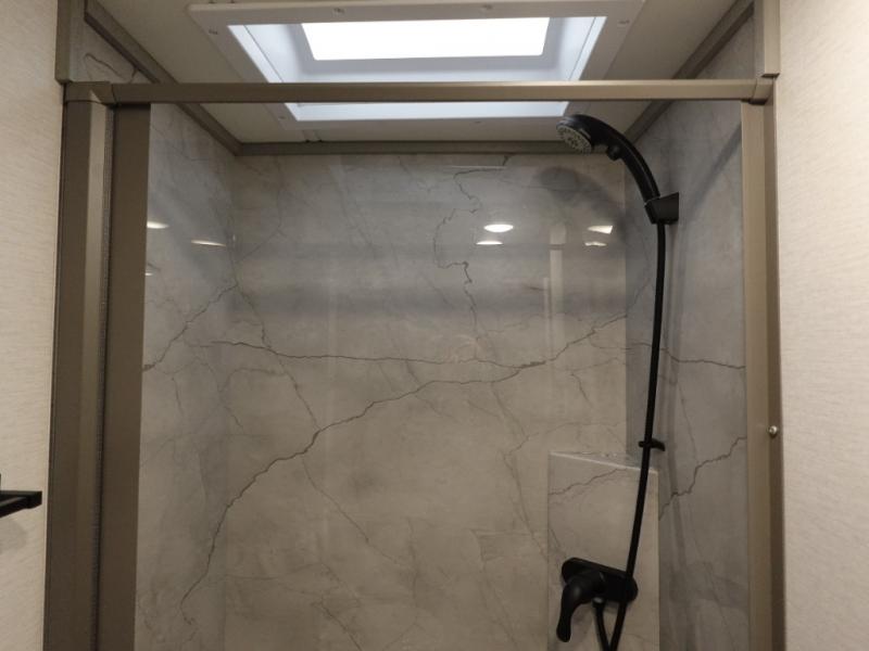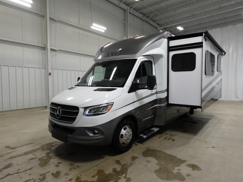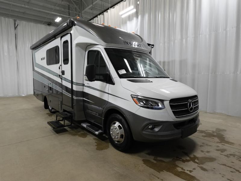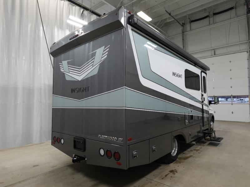 Elevate your journey with the Insight Class C diesel motorhomes by Fleetwood RV. The Mercedes-Benz sprinter chassis and 2.0L turbo diesel engine provide dependability and power wherever you decide to roam, and you'll love the elegant custom full body paint. There are also frameless windows outside, along with side swing luggage doors, a Girard power awning with a wind sensor and LED light, plus four point hydraulic levelers for hassle-free set up. The interior is outfitted with solid surface countertops and solid hardwood cabinetry, plus premium linoleum flooring and roller shades and valances. A Truma Comfort Plus tankless water heater provides exceptional performance, and the 3.6kW LP generator will keep you powered up.