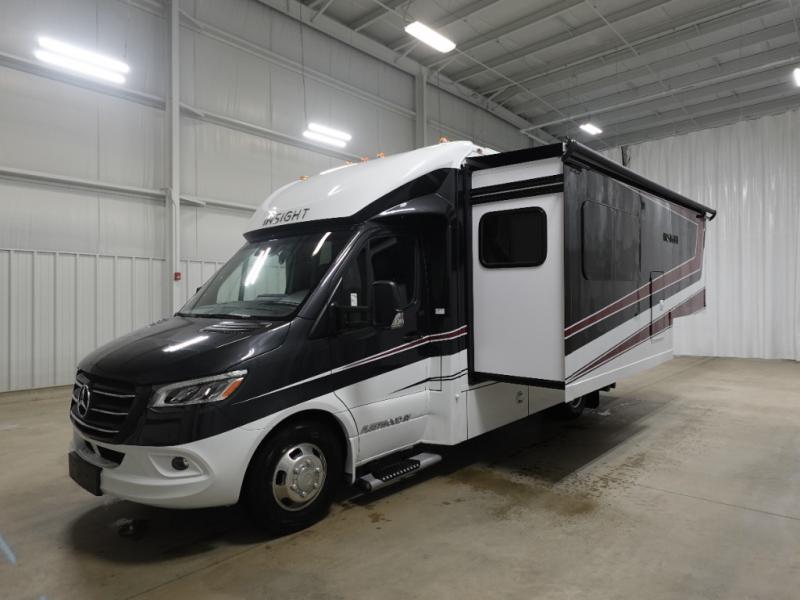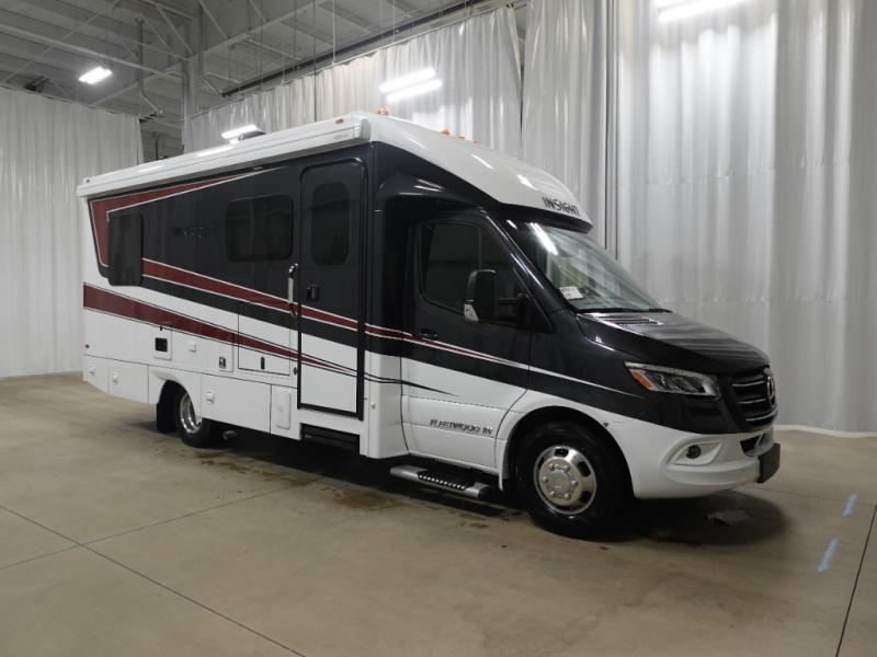 Elevate your journey with the Insight Class C diesel motorhomes by Fleetwood RV. The Mercedes-Benz sprinter chassis and 2.0L turbo diesel engine provide dependability and power wherever you decide to roam, and you'll love the elegant custom full body paint choices. There are also frameless windows outside, along with side swing luggage doors, a Girard power awning with a wind sensor and LED light, plus four point hydraulic levelers for hassle-free set up. The interior is outfitted with solid surface countertops and solid hardwood cabinetry, plus premium linoleum flooring and roller shades and valances.