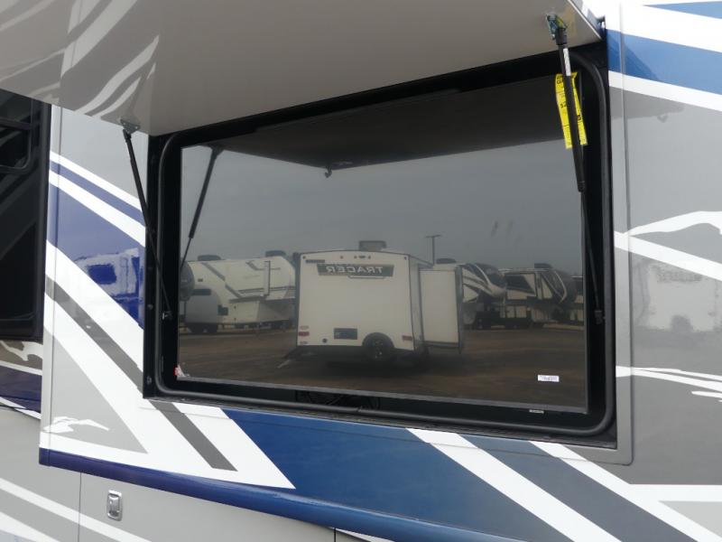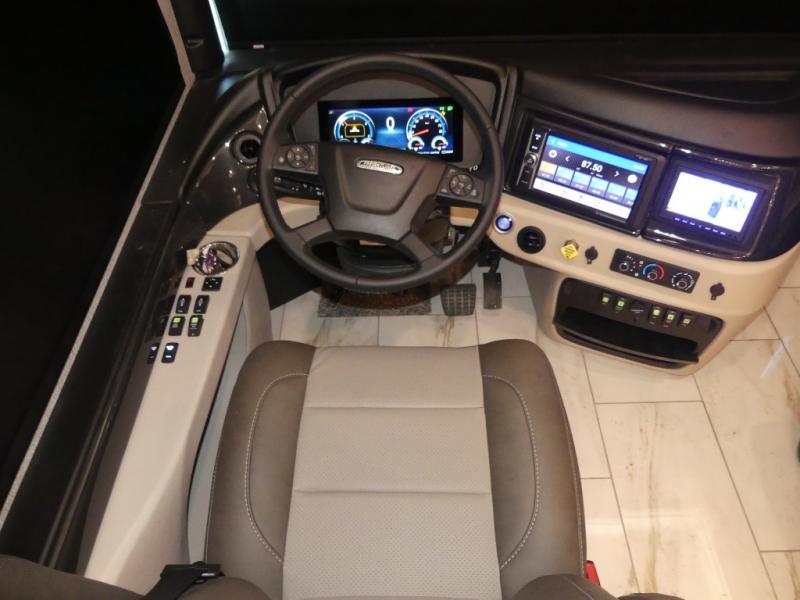 With any Palisade Class A diesel motorhome by Fleetwood RV, you will be met with luxury at every turn! There is a Freedom Bridge foundation and a Freightliner Custom Chassis plus an Allison 3000 6-speed transmission for a smooth drive. The Vacu-Bond aluminum framed constructed sidewalls, roof, and floors mean you can enjoy your coach for years to come, and the Powerlock System interlocks the floor, walls and roof for even more strength. Outside, the basement pass-through storage and side swing aluminum bus-style baggage doors will let you easily pack camp gear, and the 4-color premier full body paint is sure to turn heads as you travel down the highway. Additional exterior features include automatic hydraulic leveling jacks, a King universal stationary satellite, automatic entrance steps, and the list goes on! Once inside, you can enjoy the porcelain tile flooring, hardwood cabinetry, elegant tile backsplash, dual bath sinks, and glass shower door to name a few comforts!