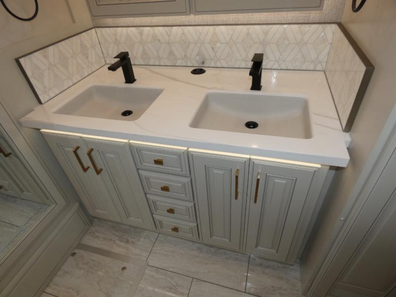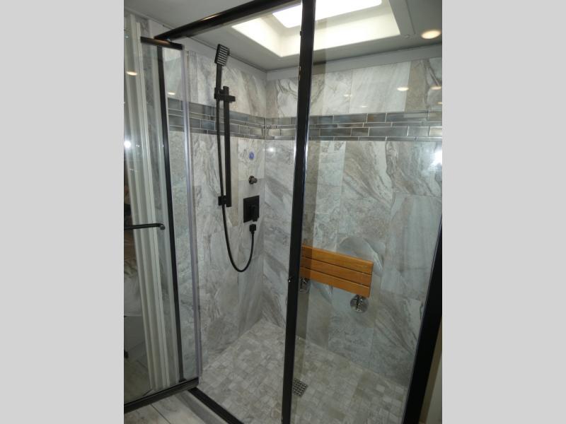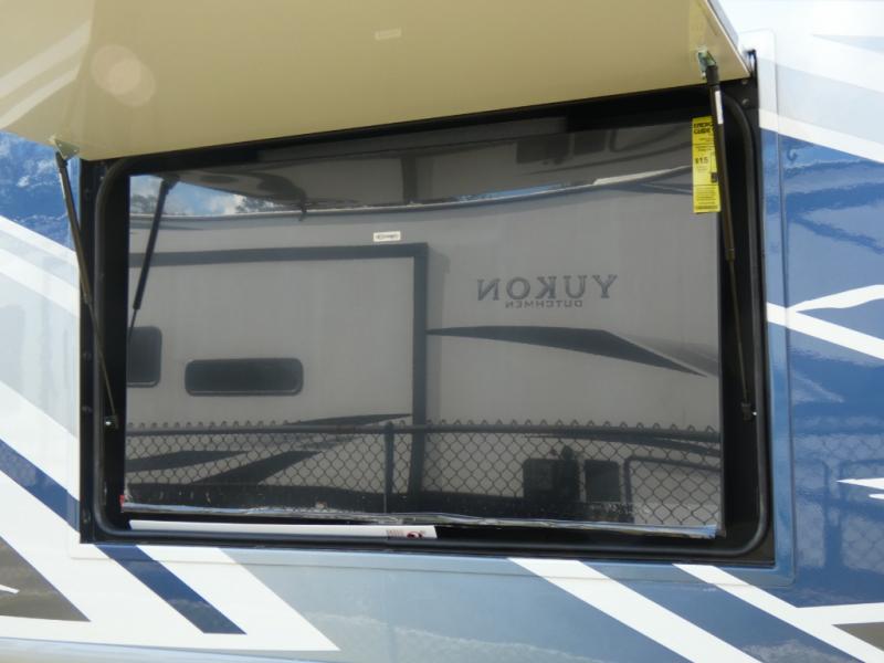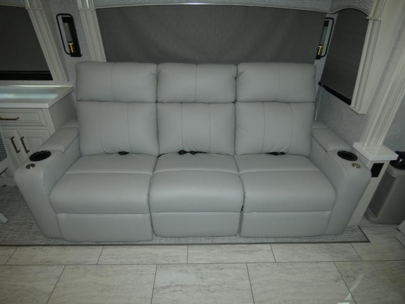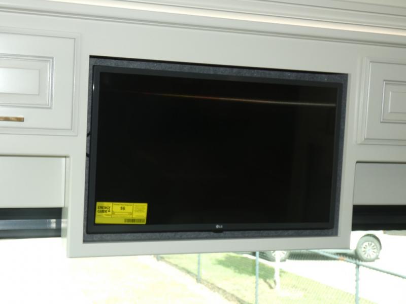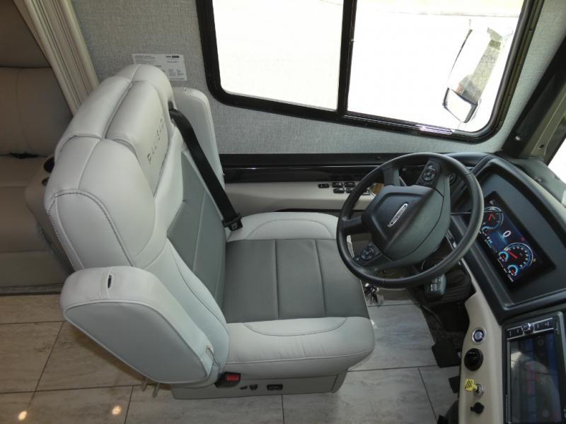 With any Palisade Class A diesel motorhome by Fleetwood RV, you will be met with luxury at every turn! There is a Freedom Bridge foundation and a Freightliner Custom Chassis plus an Allison 3000 6-speed transmission for a smooth drive. The Vacu-Bond aluminum framed constructed sidewalls, roof, and floors mean you can enjoy your coach for years to come, and the Powerlock System interlocks the floor, walls and roof for even more strength. Outside, the basement pass-through storage and side swing aluminum bus-style baggage doors will let you easily pack camp gear, and the 4-color premier full body paint is sure to turn heads as you travel down the highway. Additional exterior features include automatic hydraulic leveling jacks, a King universal stationary satellite, automatic entrance steps, and the list goes on! Once inside, you can enjoy the porcelain tile flooring, hardwood cabinetry, elegant tile backsplash, dual bath sinks, and glass shower door to name a few comforts!