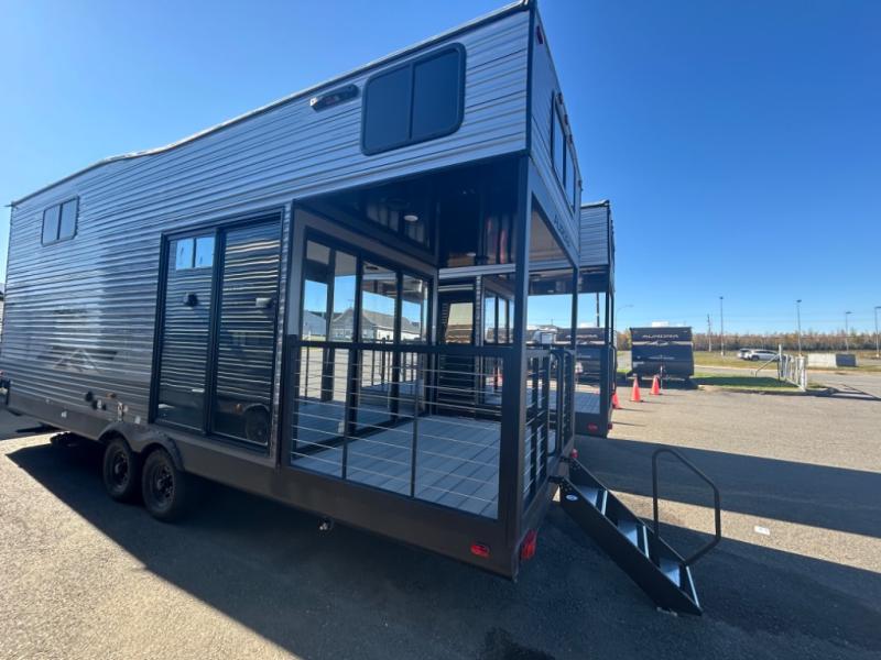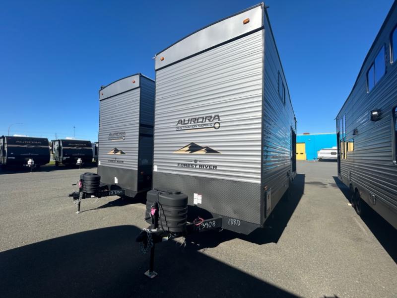Comfortability, usability, and quality is what you will find in each one of these Forest River Aurora travel trailers, toy haulers or destination trailers! They are designed with a superior build and packed full with industry leading, functional, and distinctive standard features. SolidStep entrance steps and a Safe-T rail door assist on main entry door to help you safely enter and exit the unit. The diamond plate rock guard will protect your unit from road debris and the nitrogen filled radial tires, which keep their pressure longer, offer better fuel economy. You will also find upgraded JBL Elite exterior speakers outside, an electric awning with multicolor lights and remote, plus flush mount baggage doors for easy packing. The interiors are beautifully designed with a deep undermount farm style sink, stainless steel appliances, and linoleum flooring in the slide outs which will be easy to clean. Come find your favorite model today!