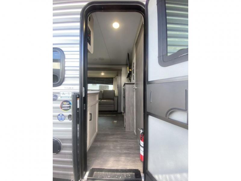 Comfortability, usability, and quality is what you will find in each one of these Forest River Aurora travel trailers or toy haulers! They are designed with a superior build and packed full with industry leading, functional, and distinctive standard features. SolidStep entrance steps and an XL swing arm grab handle help you to safely enter and exit the unit. The diamond plate rock guard will protect your unit from road debris and the nitrogen filled radial tires, which keep their pressure longer, offer better fuel economy. You will also find upgraded JBL Elite exterior speakers outside, a Carefree awning with multicolor lights and remote, plus flush mount baggage doors for easy packing. The interiors are beautifully designed with a deep undermount farm style sink, stainless steel appliances, and linoleum flooring in the slide outs which will be easy to clean. Come find your favorite model today!