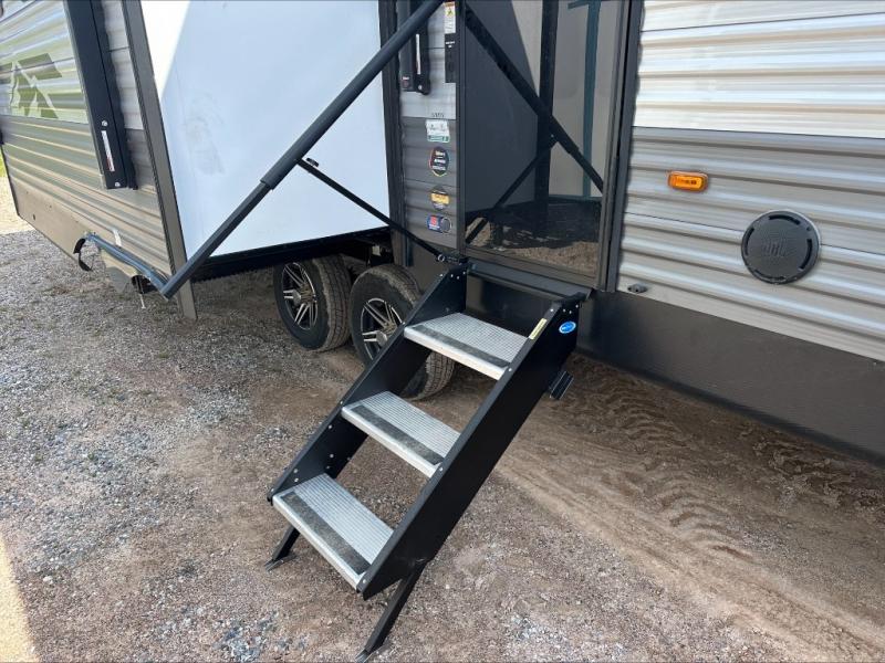 Comfortability, usability, and quality is what you will find in each one of these Forest River Aurora travel trailers, toy haulers or destination trailers! They are designed with a superior build and packed full with industry leading, functional, and distinctive standard features. SolidStep entrance steps and a Safe-T rail door assist on main entry door to help you safely enter and exit the unit. The diamond plate rock guard will protect your unit from road debris and the nitrogen filled radial tires, which keep their pressure longer, offer better fuel economy. You will also find upgraded JBL Elite exterior speakers outside, an electric awning with multicolor lights and remote, plus flush mount baggage doors for easy packing. The interiors are beautifully designed with a deep undermount farm style sink, stainless steel appliances, and linoleum flooring in the slide outs which will be easy to clean. Come find your favorite model today!