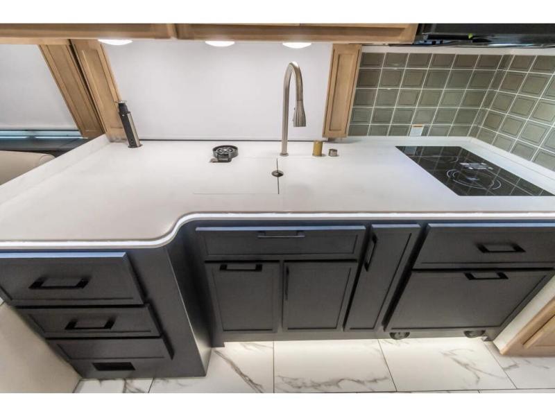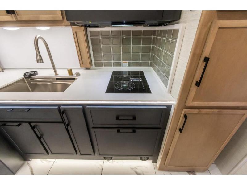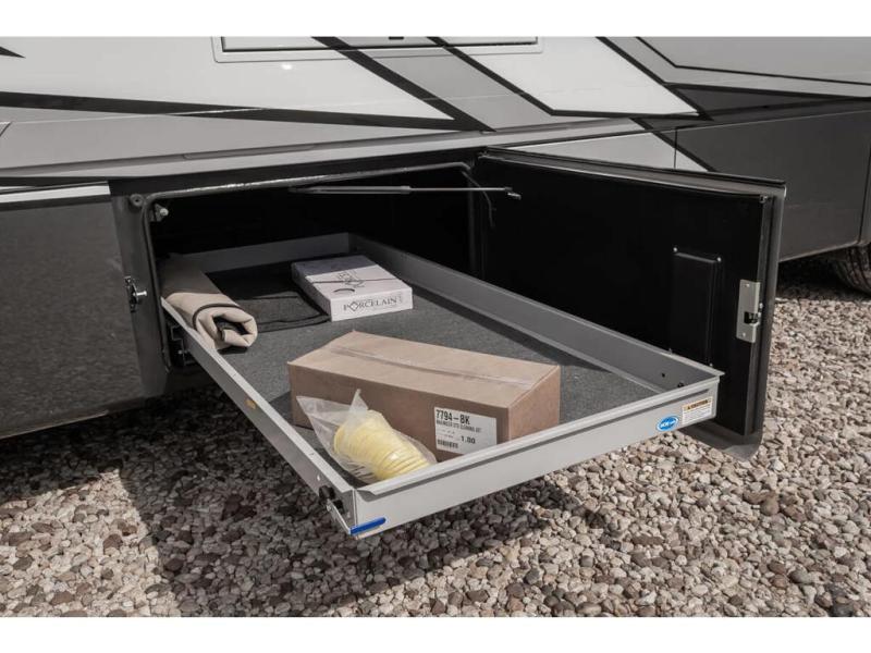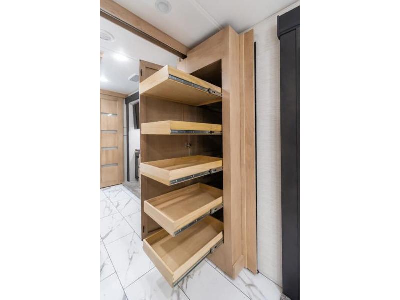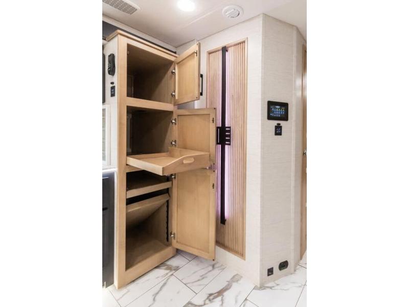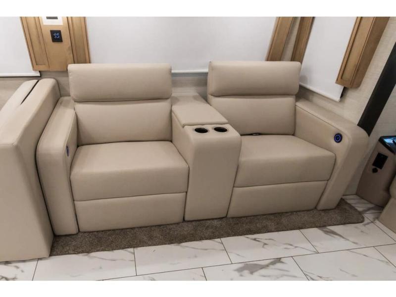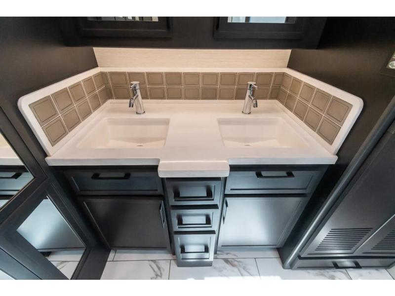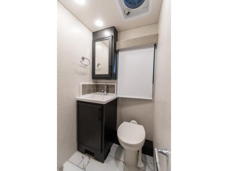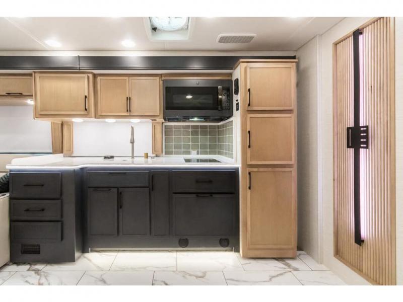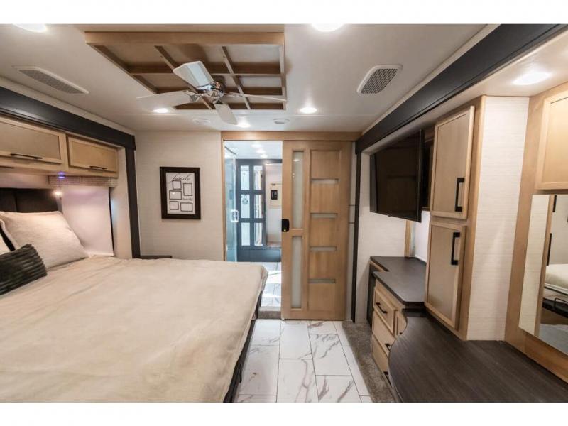 Travel has never been easier thanks to all the amenities that this unit offers. Starting with a full rear bathroom that boasts, an ample wardrobe, linen closet, washer and dryer prep, medicine cabinet, shelves, and dual sink to have great comfort in every way, this unit also has a half bathroom which will be the perfect addition to provide comfort to guests. Privacy is given by our private bedroom that features a 43” LED TV, fireplace, tilt-a-view king bed, dresser, mirror, vanity/desk, and many overhead cabinets to keep your belongings organized. Cooking will be a pleasure since this kitchen has everything needed to perform culinary duties, boasting a pantry, fridge, appliance garage and pantry, convection microwave, countertop extension, and dinette excellent for taking breaks each morning. And for the rest of the family or extra guests, more spaces to rest can be found in the amazing living with the hide-a-bed sofa, sofa/bed, and a bunk-over cab making room to sleep for a total of 6 people!