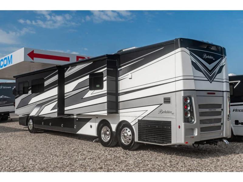 Experience a new level of luxury and performance at a value driven price point with each one of these Forest River Berkshire XLT Class A diesel motorhomes! Drive the difference with an optional rear V-Ride suspension system, an independent front suspension, and SACHS custom tuned shock absorbers for a smoother ride. The raised rail Freightliner XCR chassis will hold up for years of use and the full body exterior paint options are sure to turn heads as you travel down the highway. The interior is outfitted with polished porcelain tile throughout, polished solid surface countertops, hardwood raised panel cabinet doors, and many more comforts!