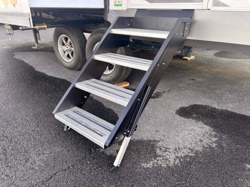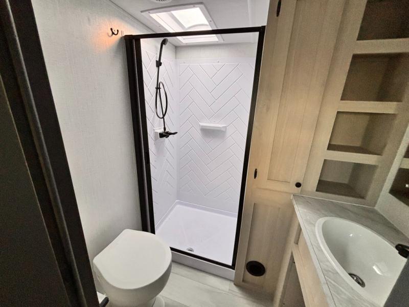 With any Wildcat fifth wheel by Forest River you will enjoy affordable luxury at every turn. These models are constructed with residential fiberglass insulation in the roof and floor, a sectioned ABS plastic underbelly armor, and a vacuum bonded, welded aluminum structure for added strength and durability. You will also find seamless roto-cast holding tanks, an outdoor shower, and 4-point auto leveling for quick and easy setup. Each model includes a best-in-class, high-efficiency 35,000 BTU furnace, along with a 18,000 BTU ducted A/C, with second and third A/C prep, plus an on-demand tankless water heater for added convenience. There are carpet-free living spaces, residential backsplash, motion lighting throughout, and many more comforts!
