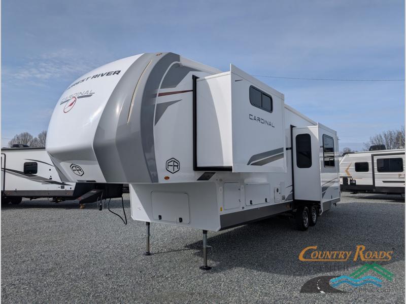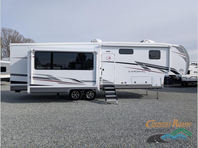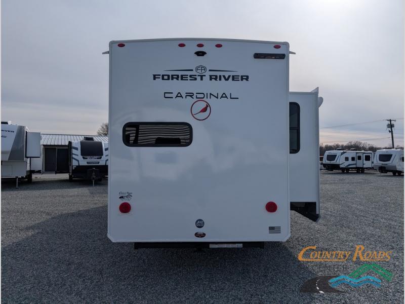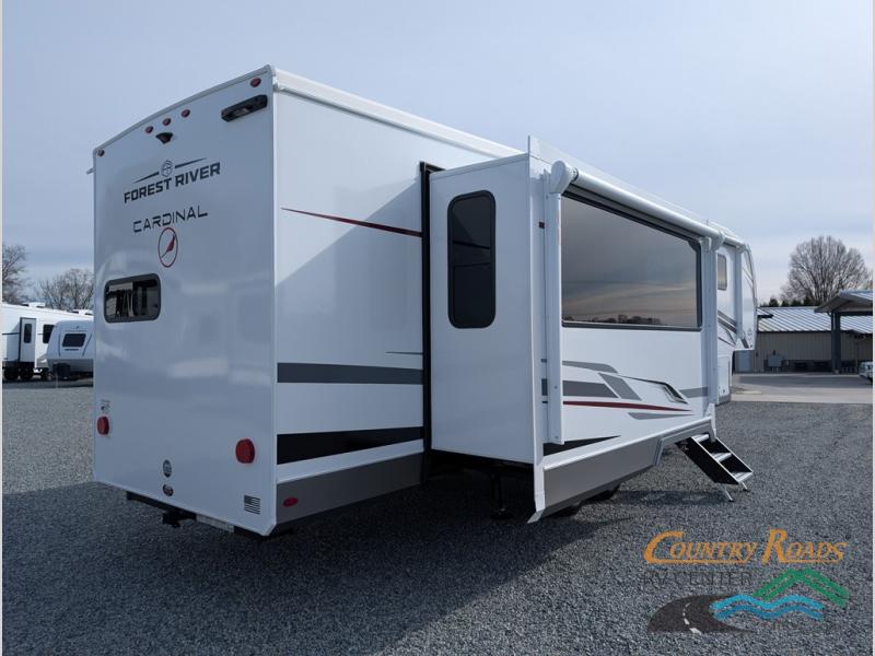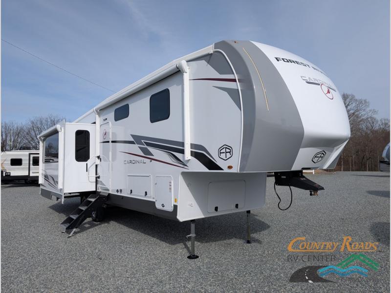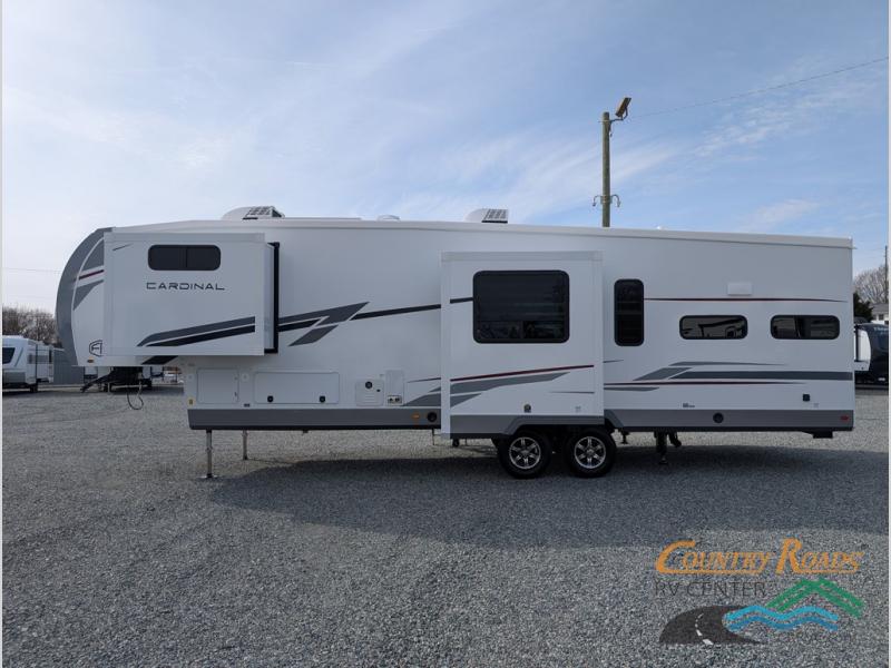 With any Cardinal fifth wheel by Forest River you will enjoy affordable luxury at every turn. These models are constructed with residential fiberglass insulation in the roof and floor, a sectioned ABS plastic underbelly armor, and a vacuum bonded, welded aluminum structure for added strength and durability. You will also find seamless roto-cast holding tanks, an outdoor shower, and 4-point auto leveling for quick and easy setup. Each model includes a best-in-class, high-efficiency 35,000 BTU furnace, along with a 18,000 BTU ducted A/C, with second and third A/C prep, plus an on-demand tankless water heater for added convenience. There are carpet-free living spaces, residential backsplash, motion lighting throughout, and many more comforts!