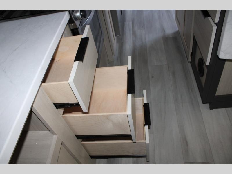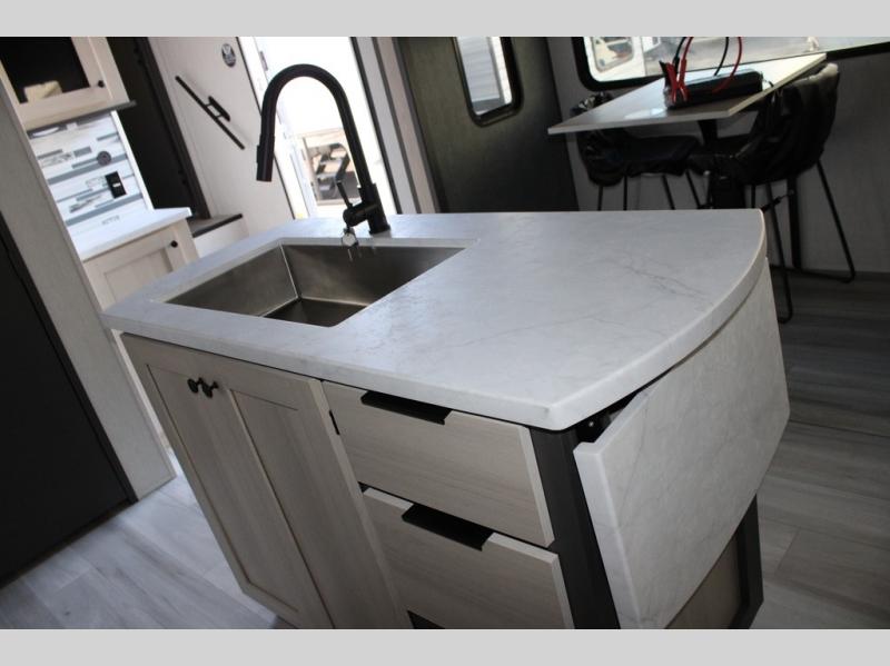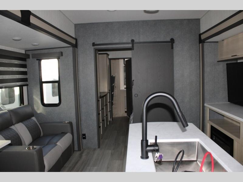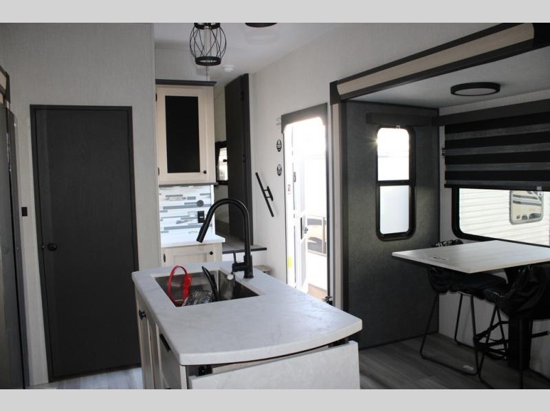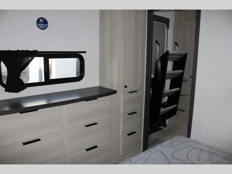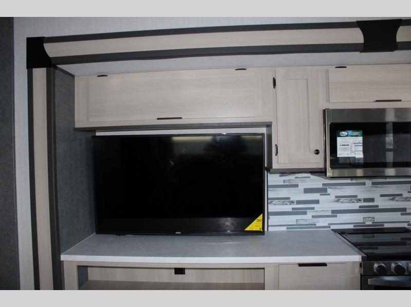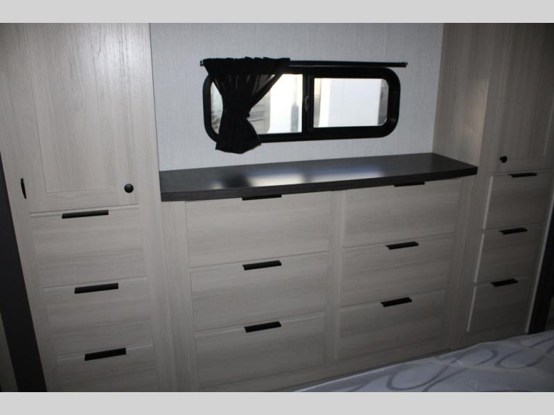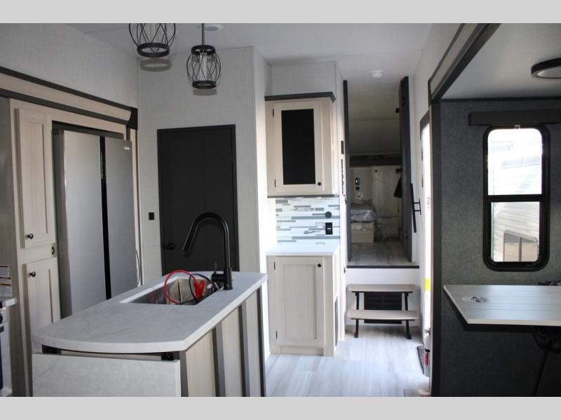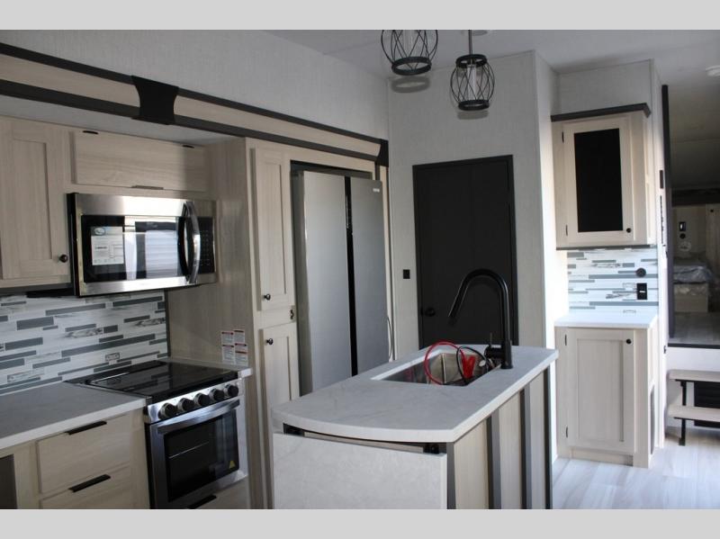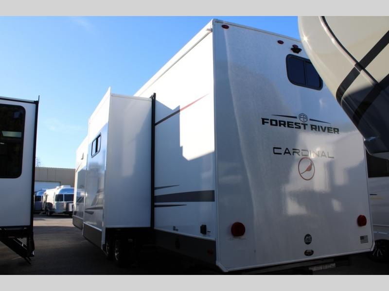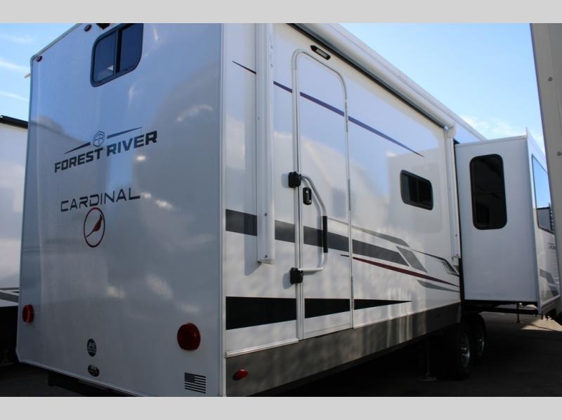With any Cardinal fifth wheel by Forest River you will enjoy affordable luxury at every turn. These models are constructed with residential fiberglass insulation in the roof and floor, a sectioned ABS plastic underbelly armor, and a vacuum bonded, welded aluminum structure for added strength and durability. You will also find seamless roto-cast holding tanks, an outdoor shower, and 4-point auto leveling for quick and easy setup. Each model includes a best-in-class, high-efficiency 35,000 BTU furnace, along with a 13,500 BTU ducted A/C, with second and third A/C prep, plus an on-demand tankless water heater for added convenience. There are carpet-free living spaces, residential backsplash, motion lighting throughout, and many more comforts!