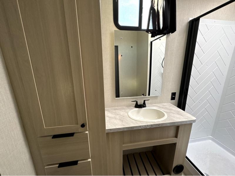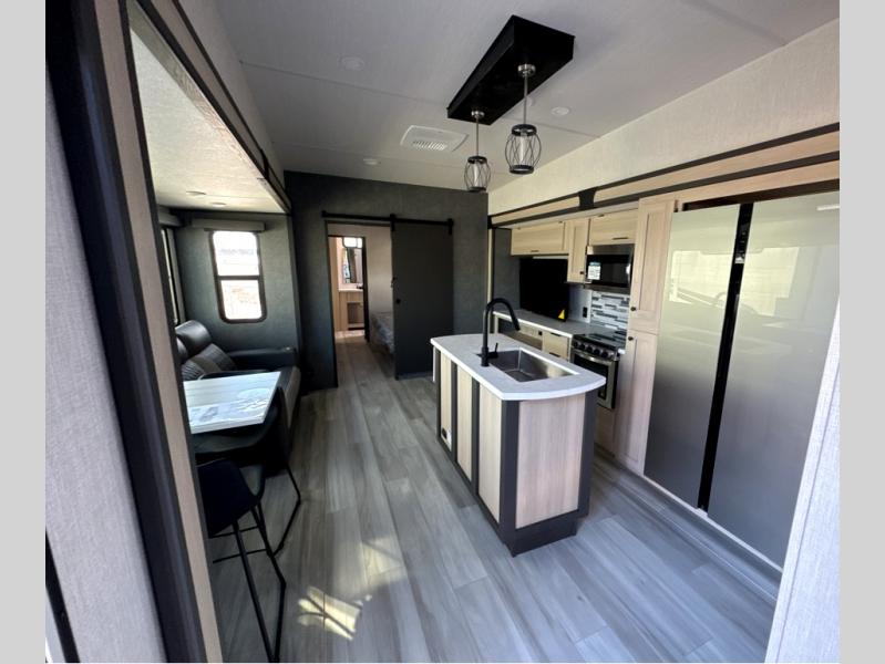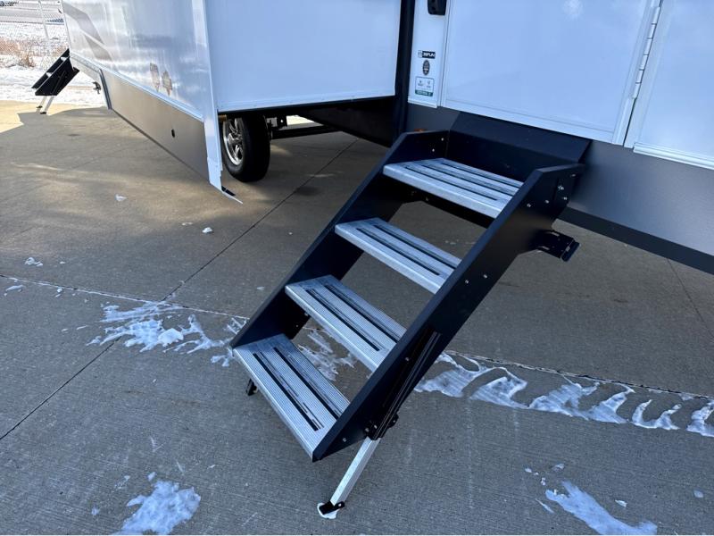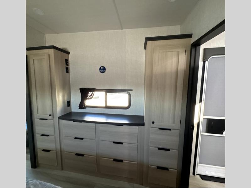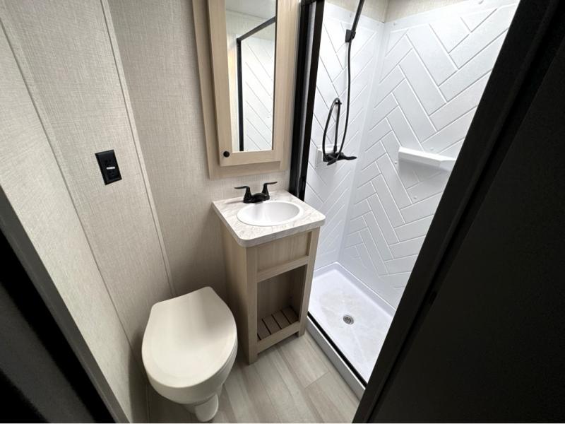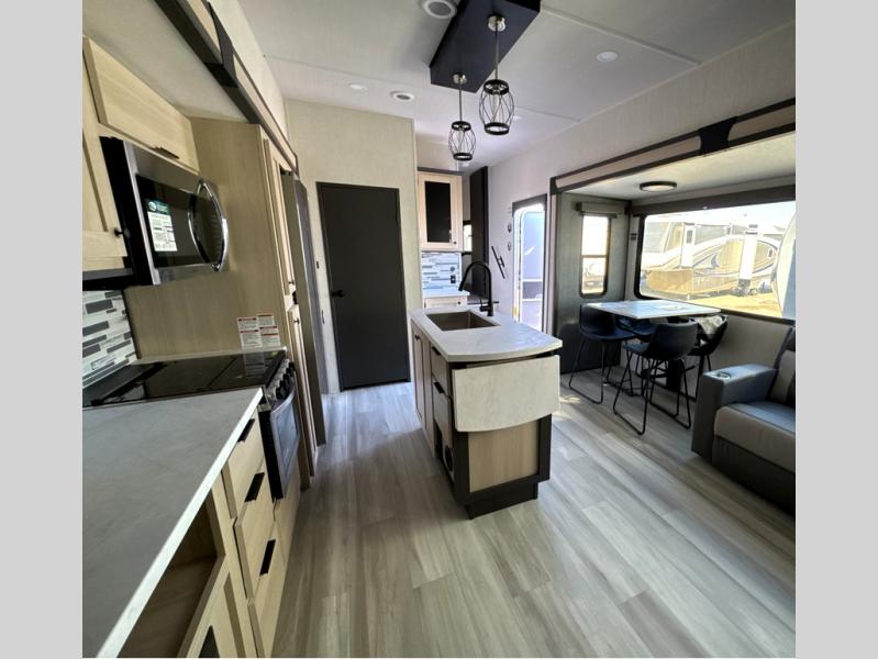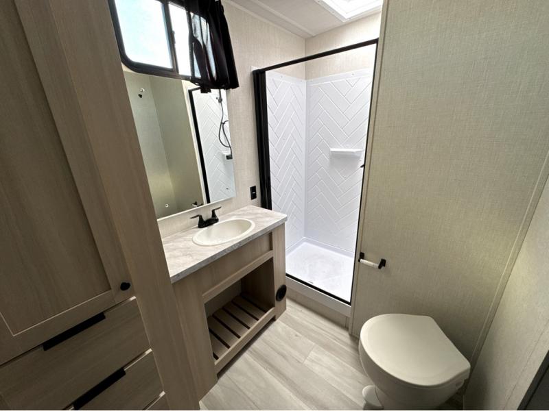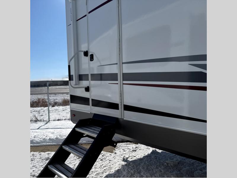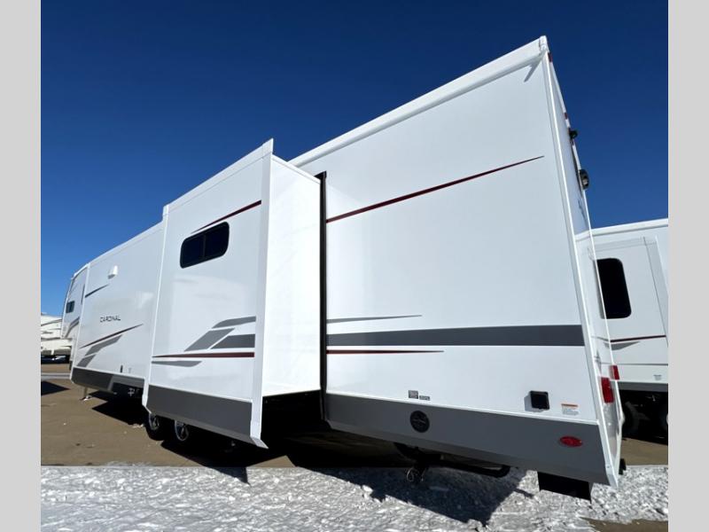 With any Cardinal fifth wheel by Forest River you will enjoy affordable luxury at every turn. These models are constructed with residential fiberglass insulation in the roof and floor, a sectioned ABS plastic underbelly armor, and a vacuum bonded, welded aluminum structure for added strength and durability. You will also find seamless roto-cast holding tanks, an outdoor shower, and 4-point auto leveling for quick and easy setup. Each model includes a best-in-class, high-efficiency 35,000 BTU furnace, along with a 13,500 BTU ducted A/C, with second and third A/C prep, plus an on-demand tankless water heater for added convenience. There are carpet-free living spaces, residential backsplash, motion lighting throughout, and many more comforts!