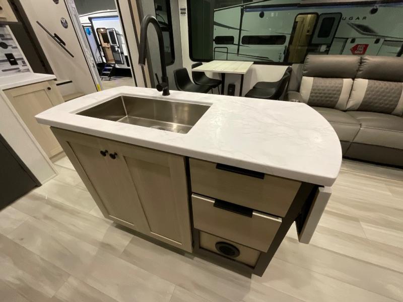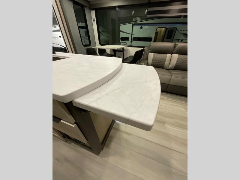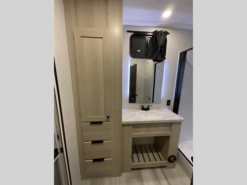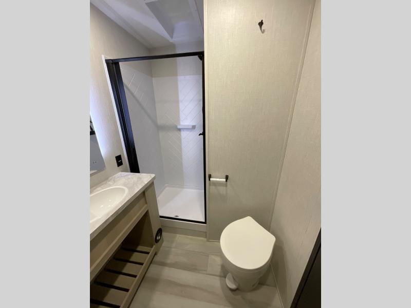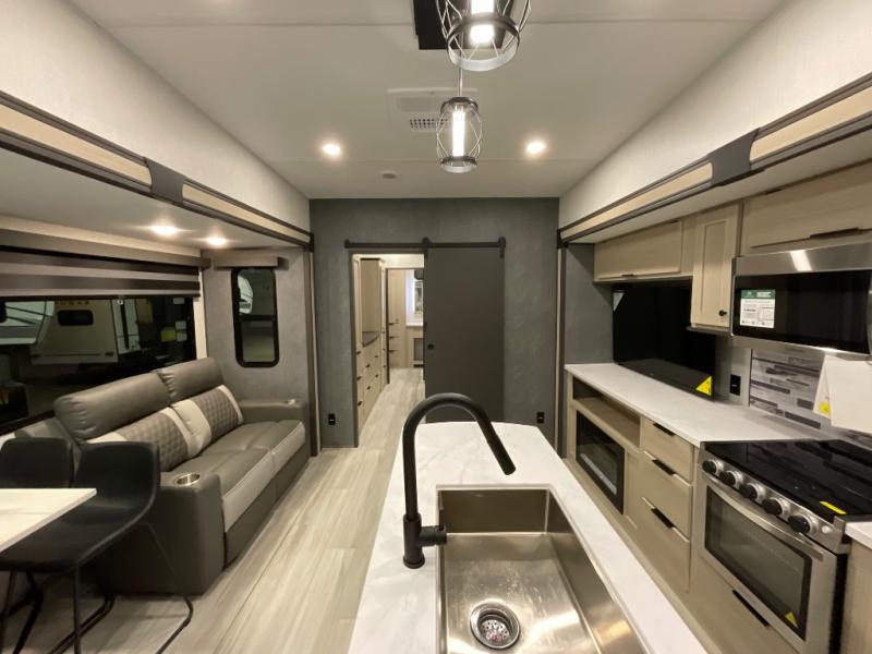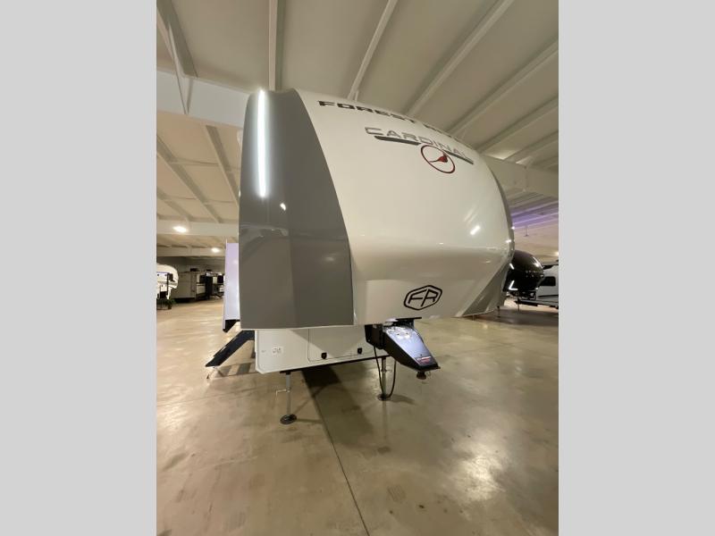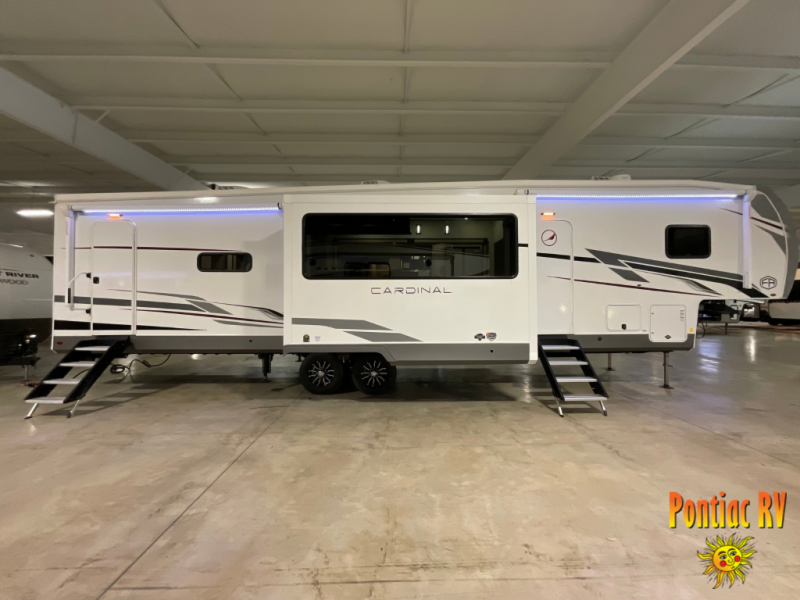 With any Cardinal fifth wheel by Forest River you will enjoy affordable luxury at every turn. These models are constructed with residential fiberglass insulation in the roof and floor, a sectioned ABS plastic underbelly armor, and a vacuum bonded, welded aluminum structure for added strength and durability. You will also find seamless roto-cast holding tanks, an outdoor shower, and 4-point auto leveling for quick and easy setup. Each model includes a best-in-class, high-efficiency 35,000 BTU furnace, along with a 18,000 BTU ducted A/C, with second and third A/C prep, plus an on-demand tankless water heater for added convenience. There are carpet-free living spaces, residential backsplash, motion lighting throughout, and many more comforts!