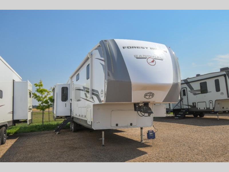 With any Cardinal fifth wheel by Forest River you will enjoy affordable luxury at every turn. These models are constructed with residential fiberglass insulation in the roof and floor, a sectioned ABS plastic underbelly armor, and a vacuum bonded, welded aluminum structure for added strength and durability. You will also find seamless roto-cast holding tanks, an outdoor shower, and 4-point auto leveling for quick and easy setup. Each model includes a best-in-class, high-efficiency 35,000 BTU furnace, along with a 18,000 BTU ducted A/C, with second and third A/C prep, plus an on-demand tankless water heater for added convenience. There are carpet-free living spaces, residential backsplash, motion lighting throughout, and many more comforts!
