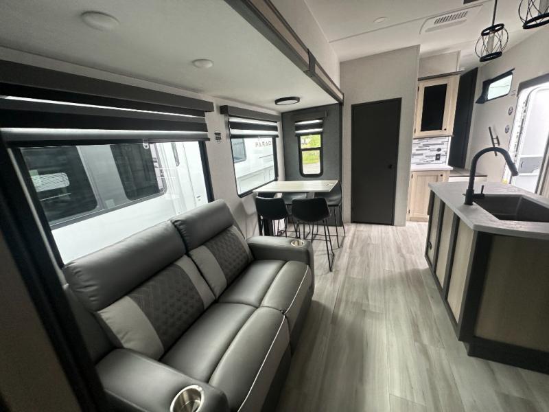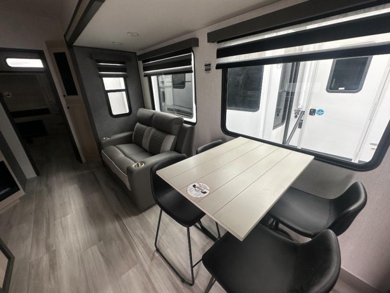 With any Cardinal fifth wheel by Forest River you will enjoy affordable luxury at every turn. These models are constructed with residential fiberglass insulation in the roof and floor, a sectioned ABS plastic underbelly armor, and a vacuum bonded, welded aluminum structure for added strength and durability. You will also find seamless roto-cast holding tanks, an outdoor shower, and 4-point auto leveling for quick and easy setup. Each model includes a best-in-class, high-efficiency 35,000 BTU furnace, along with a 18,000 BTU ducted A/C, with second and third A/C prep, plus an on-demand tankless water heater for added convenience. There are carpet-free living spaces, residential backsplash, motion lighting throughout, and many more comforts!
