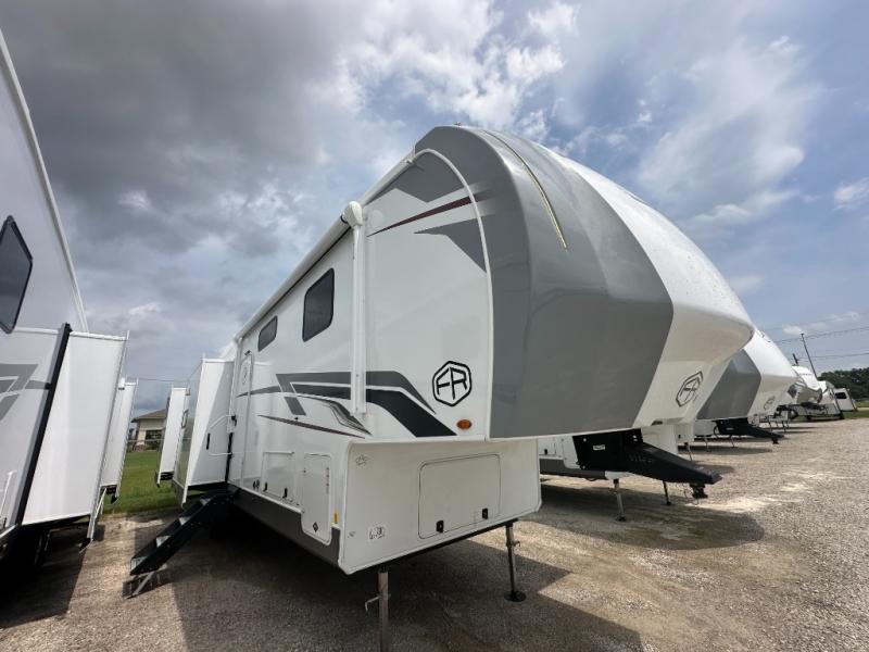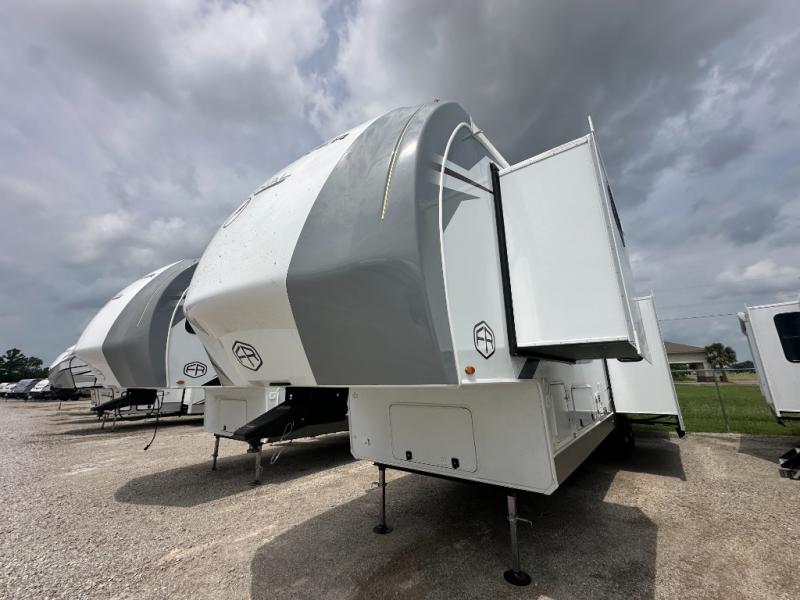 With any Cardinal fifth wheel by Forest River you will enjoy affordable luxury at every turn. These models are constructed with residential fiberglass insulation in the roof and floor, a sectioned ABS plastic underbelly armor, and a vacuum bonded, welded aluminum structure for added strength and durability. You will also find seamless roto-cast holding tanks, an outdoor shower, and 4-point auto leveling for quick and easy setup. Each model includes a best-in-class, high-efficiency 35,000 BTU furnace, along with a 18,000 BTU ducted A/C, with second and third A/C prep, plus an on-demand tankless water heater for added convenience. There are carpet-free living spaces, residential backsplash, motion lighting throughout, and many more comforts!