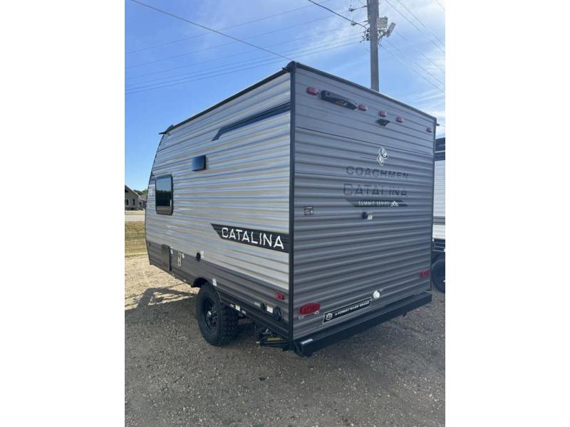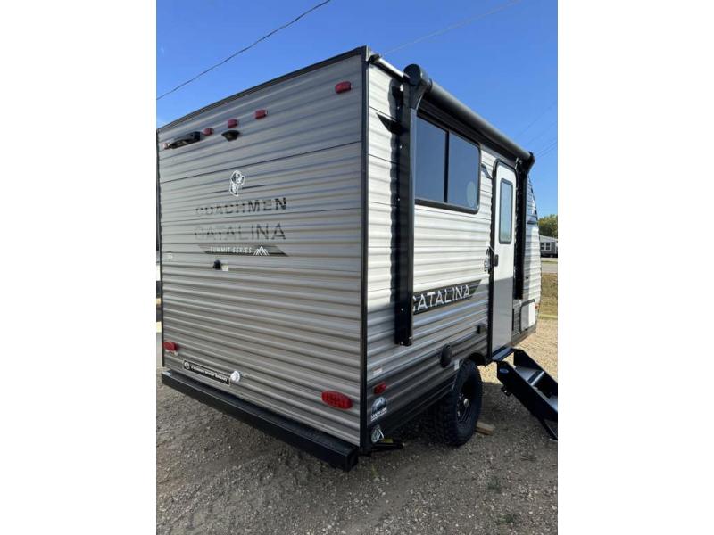 With any Catalina Summit Series 7' by Coachmen RV, you can create an easier adventure with the versatility and simplicity of the shorter lengths and lighter weights! Each includes a premium exterior graphics package, a smooth HD aluminum radius front, and EZ lube axles with leaf spring suspension. The exterior offers a heavy duty standard tongue jack, a diamond plate rock guard to protect against road debris, exterior RG-6 coax cabling and satellite prep, rear view camera prep, and flush mount baggage doors with radius corners for your outdoor gear. Inside, you will enjoy a premium JBL interior speaker, USB charging ports, seamless Thermofoil countertops throughout, a deep basin farm style sink for easy cleanup, and GE kitchen appliances. It's time to choose an affordable and maneuverable single axle trailer today!