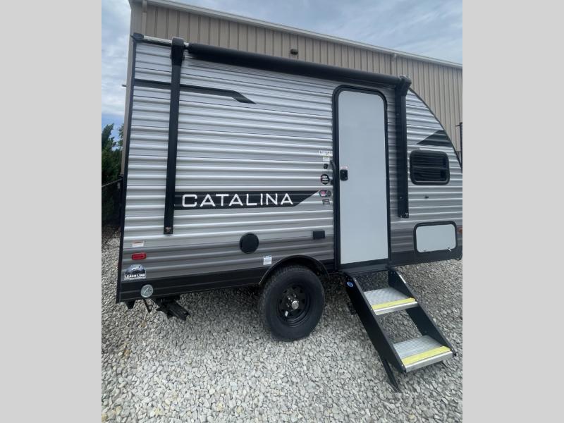 With any Catalina Summit Series 7' by Coachmen RV, you can create an easier adventure with the versatility and simplicity of the shorter lengths and lighter weights! Each includes a premium exterior graphics package, a smooth HD aluminum radius front, and EZ lube axles with leaf spring suspension. The exterior offers a heavy duty standard tongue jack, a diamond plate rock guard to protect against road debris, exterior RG-6 coax cabling and satellite prep, rear view camera prep, and flush mount baggage doors with radius corners for your outdoor gear. Inside, you will enjoy a premium JBL interior speaker, USB charging ports, seamless Thermofoil countertops throughout, a deep basin farm style sink for easy cleanup, and GE kitchen appliances. It's time to choose an affordable and maneuverable single axle trailer today!