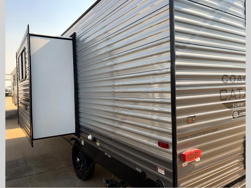 With any Catalina Summit Series 7' by Coachmen RV, you can create an easier adventure with the versatility and simplicity of the shorter lengths and lighter weights! Each includes a premium exterior graphics package, a smooth HD aluminum radius front, and EZ lube axles with leaf spring suspension. The exterior offers a heavy duty standard tongue jack, a diamond plate rock guard to protect against road debris, exterior RG-6 coax cabling and satellite prep, rear view camera prep, and flush mount baggage doors with radius corners for your outdoor gear. Inside, you will enjoy a premium JBL interior speaker, USB charging ports, seamless Thermofoil countertops throughout, a deep basin farm style sink for easy cleanup, and GE kitchen appliances. It's time to choose an affordable and maneuverable single axle trailer today!