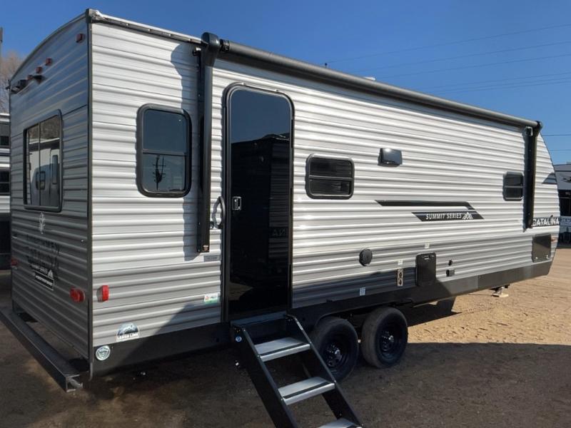 With any Catalina Summit Series 8 by Coachmen you will enjoy an affordable travel trailer packed with at-home comforts! The solid construction includes a Norco electromagnetic powder coated chassis, a seamless Alpha roof membrane, and full length frame outriggers for maximum support and durability. Dexter EZ lube axles with leaf spring suspension and self adjusting brakes provide smooth towing from home to campground, and the premium exterior graphics package is sure to turn heads as you travel down the highway. You will love the features included, such as a JBL Aura Cube media center, magnetic baggage door latches, 4,000 lumen interior touch lighting, LCI One Control, and the list goes on!