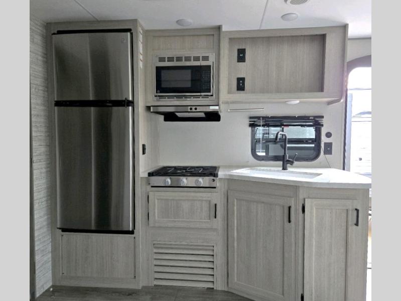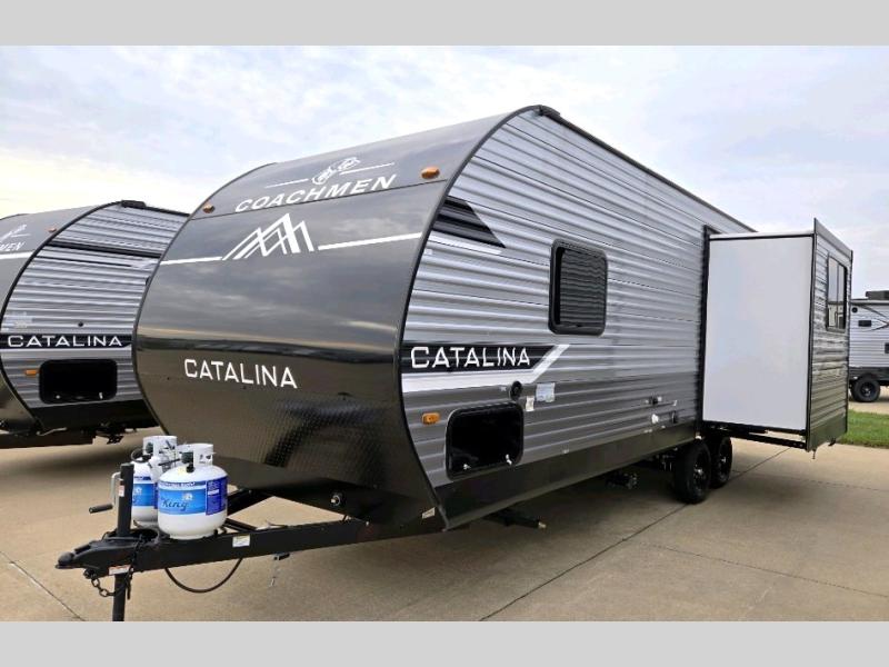 With any Catalina Summit Series 8 by Coachmen you will enjoy an affordable travel trailer packed with at-home comforts! The solid construction includes a Norco electromagnetic powder coated chassis, a seamless Alpha roof membrane, and full length frame outriggers for maximum support and durability. Dexter EZ lube axles with leaf spring suspension and self adjusting brakes provide smooth towing from home to campground, and the premium exterior graphics package is sure to turn heads as you travel down the highway. You will love the features included, such as a JBL Aura Cube media center, magnetic baggage door latches, 4,000 lumen interior touch lighting, and the list goes on!