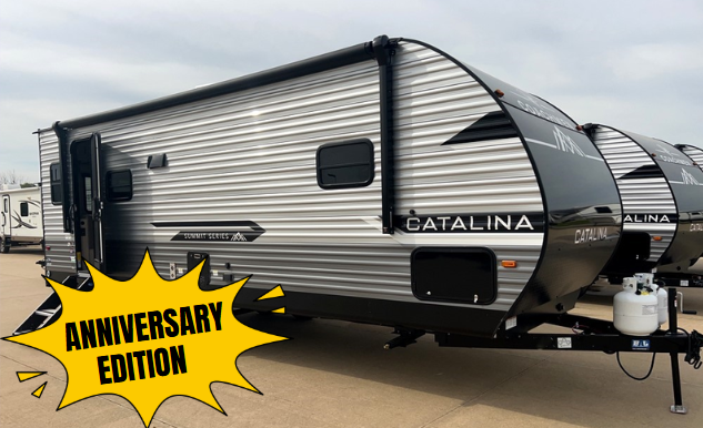 With any Catalina Summit Series 8 by Coachmen you will enjoy an affordable travel trailer packed with at-home comforts! The solid construction includes a Norco electromagnetic powder coated chassis, a seamless Alpha roof membrane, and full length frame outriggers for maximum support and durability. Dexter EZ lube axles with leaf spring suspension and self adjusting brakes provide smooth towing from home to campground, and the premium exterior graphics package is sure to turn heads as you travel down the highway. You will love the features included, magnetic baggage door latches, 4,000 lumen interior touch lighting, and the list goes on!