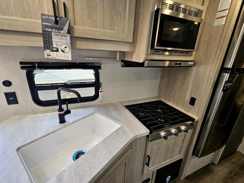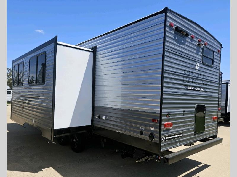 With any Catalina Summit Series 8 by Coachmen you will enjoy an affordable travel trailer packed with at-home comforts! The solid construction includes a Norco electromagnetic powder coated chassis, a seamless Alpha roof membrane, and full length frame outriggers for maximum support and durability. Dexter EZ lube axles with leaf spring suspension and self adjusting brakes provide smooth towing from home to campground, and the premium exterior graphics package is sure to turn heads as you travel down the highway. You will love the features included like the 15 ft Awning, magnetic baggage door latches, 4,000 lumen interior touch lighting, LCI One Control, and the list goes on!