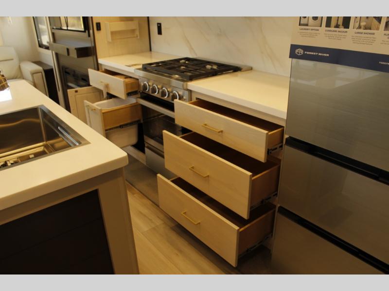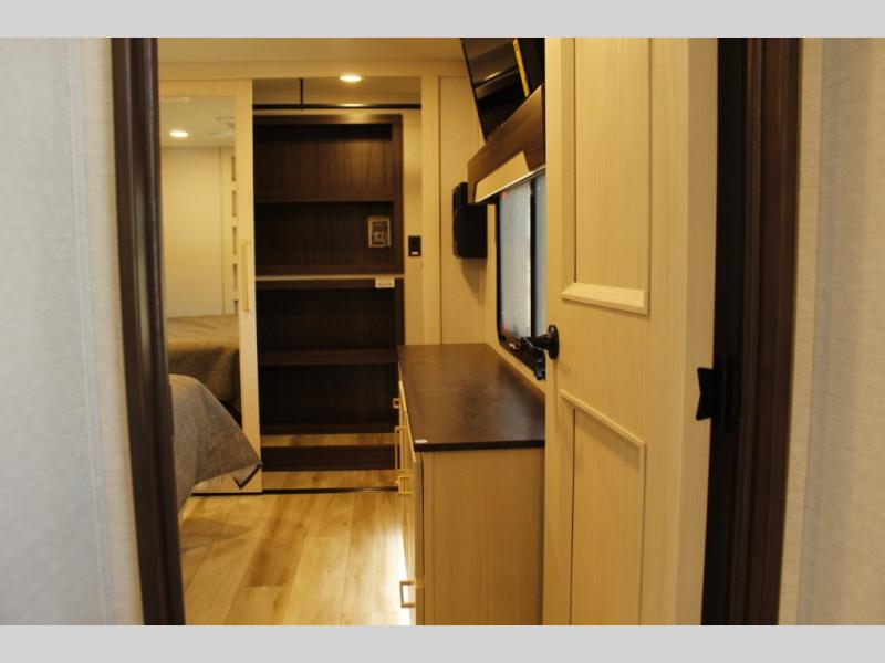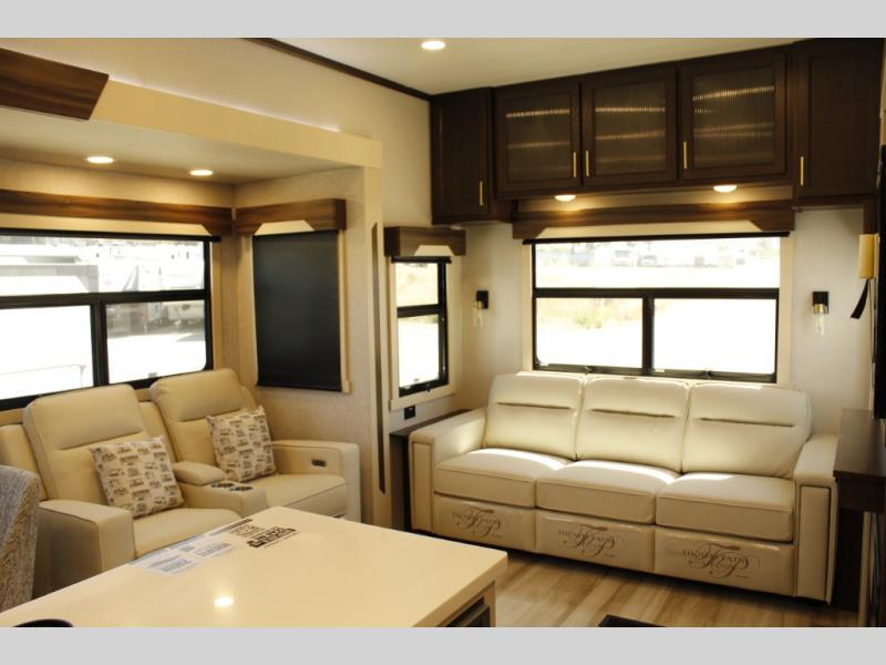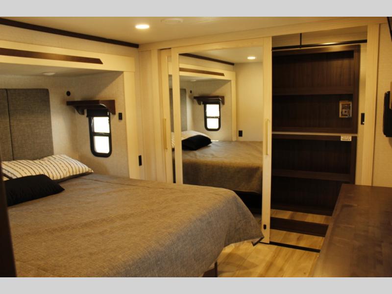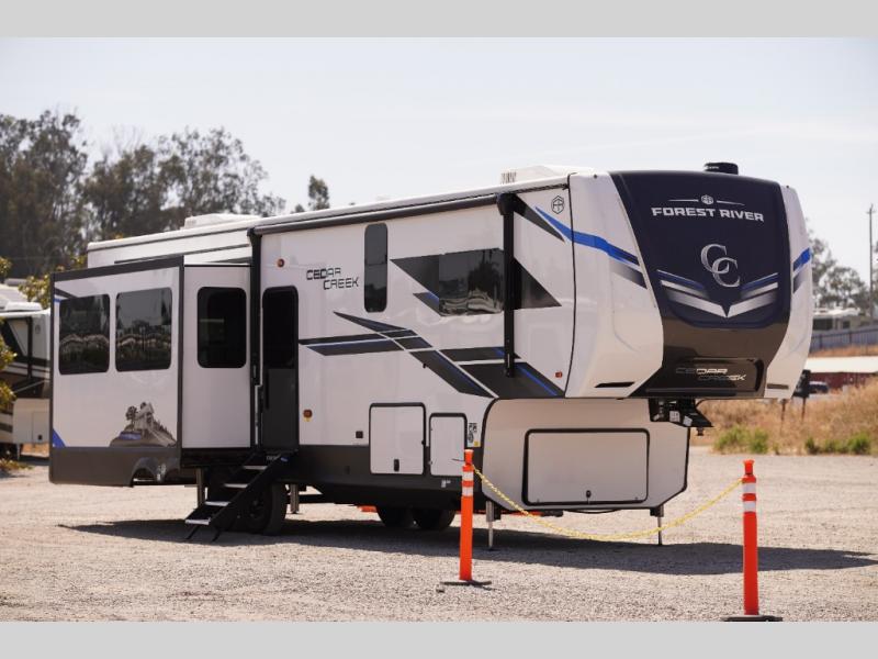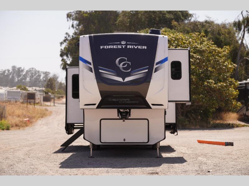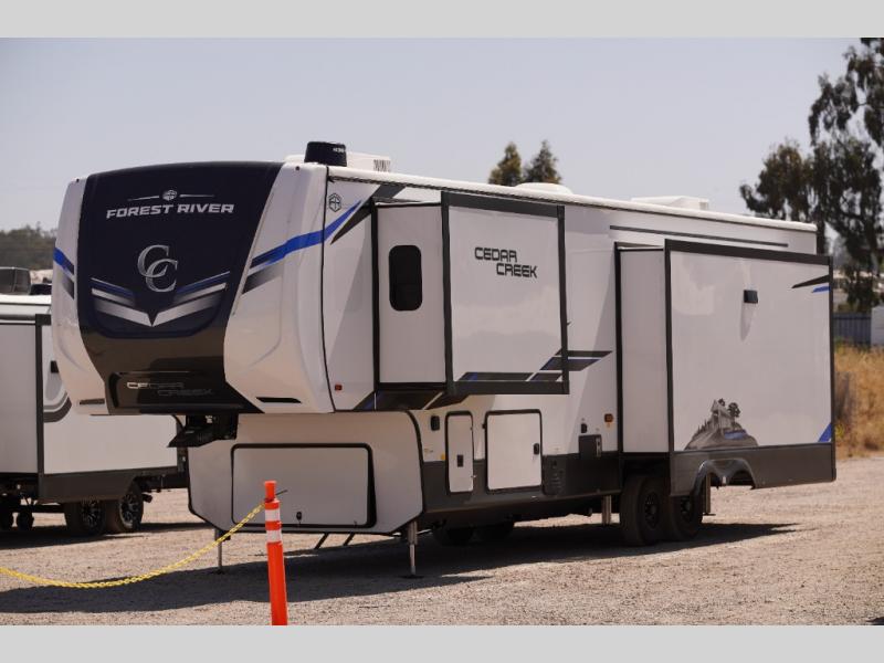 With any Cedar Creek fifth wheel by Forest River, you will find a quality-built RV with your comfort in mind! The all-aluminum super structure on 16" centers or less will provide a solid foundation to your fifth wheel, and the 3M bonded sidewalls will hold up over years of use. Each model also includes a Road Warrior suspension for smooth towing, a 21,000 lb. Rhino box hitch, and a new 101" wide body frame. Inside, you'll enjoy walnut/two tone wooden cabinets and fascias, day/night roller shades, motion lighting in the bath and bedroom closet, plus many more comforts. The new CradlePoint WiFi/5G antenna and Day 1 connectivity will help keep you connected as you travel, and the "Rich Solar" 200W solar panel will give you off-grid capabilities!