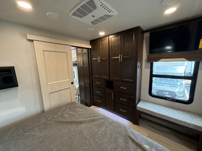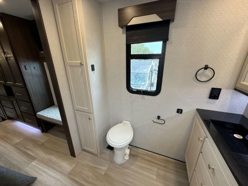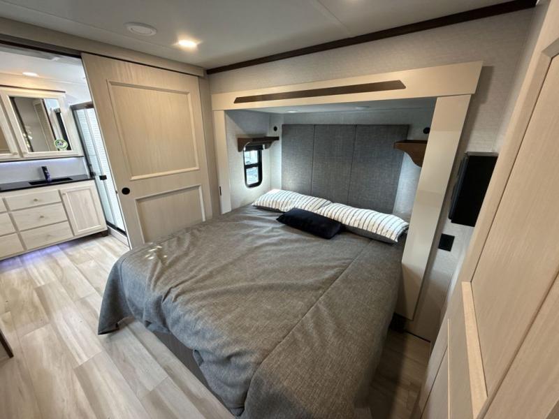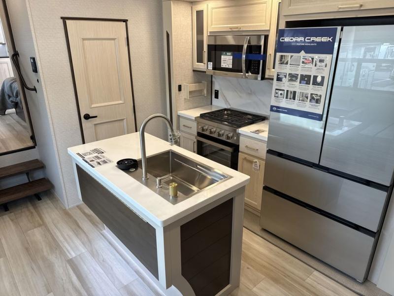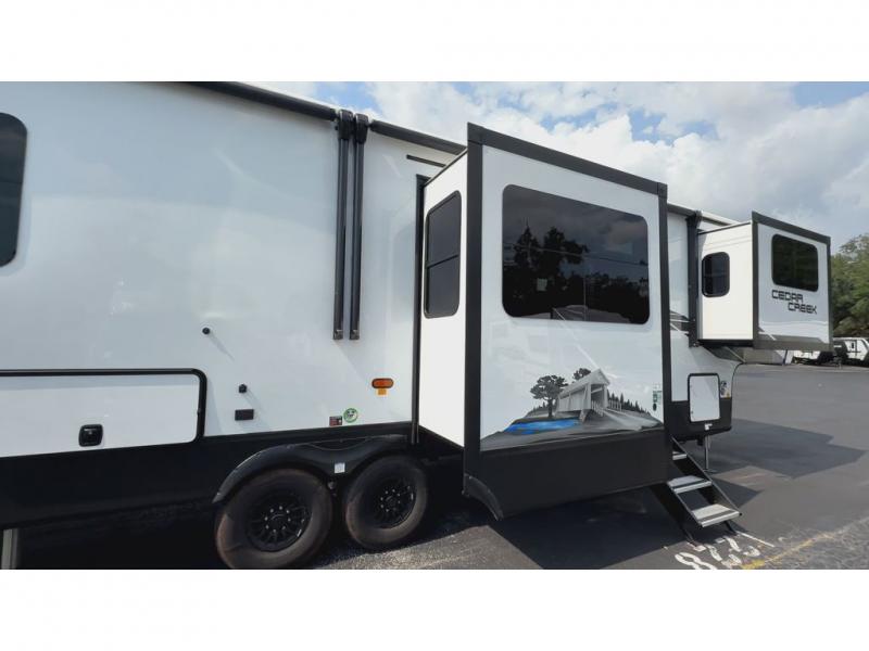 With any Cedar Creek fifth wheel by Forest River, you will find a quality-built RV with your comfort in mind! The all-aluminum super structure on 16" centers or less will provide a solid foundation to your fifth wheel, and the 3M bonded sidewalls will hold up over years of use. Each model also includes a Road Warrior suspension for smooth towing, a 21,000 lb. Rhino box hitch, and a new 101" wide body frame. Inside, you'll enjoy walnut/two tone wooden cabinets and fascias, day/night roller shades, motion lighting in the bath and bedroom closet, plus many more comforts. The new CradlePoint WiFi/5G antenna and Day 1 connectivity will help keep you connected as you travel, and the "Rich Solar" 200W solar panel will give you off-grid capabilities!