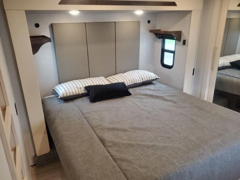 With any Cedar Creek fifth wheel by Forest River, you will find a quality-built RV with your comfort in mind! The all-aluminum super structure on 16" centers or less will provide a solid foundation to your fifth wheel, and the 3M bonded sidewalls will hold up over years of use. Each model also includes a Road Warrior suspension for smooth towing, a 21,000 lb. Rhino box hitch, and a new 101" wide body frame. Inside, you'll enjoy walnut/two tone wooden cabinets and fascias, day/night roller shades, motion lighting in the bath and bedroom closet, plus many more comforts. The new CradlePoint WiFi/5G antenna and Day 1 connectivity will help keep you connected as you travel, and the "Rich Solar" 200W solar panel will give you off-grid capabilities!