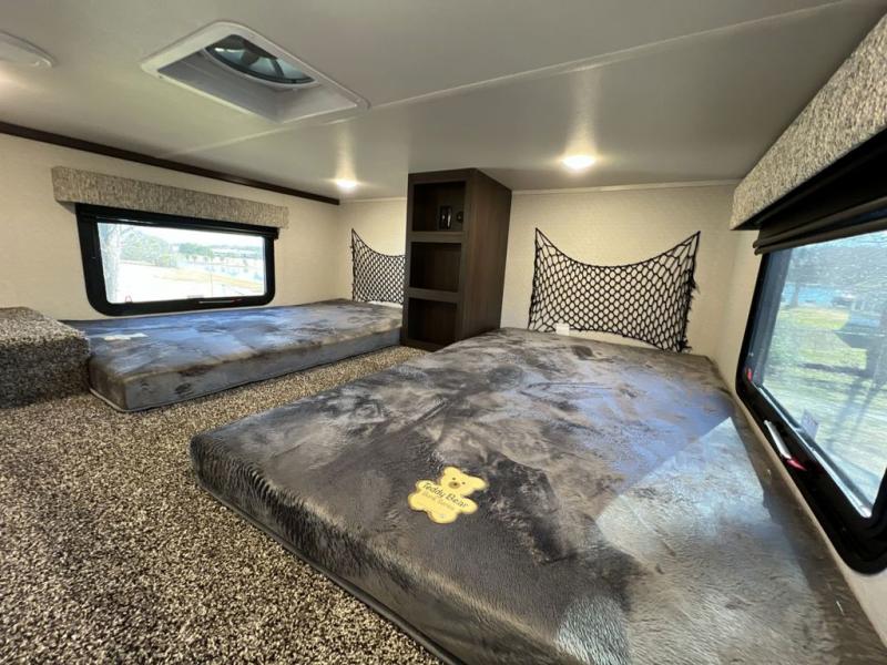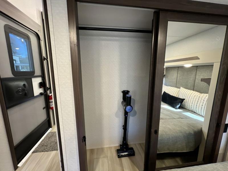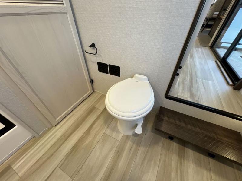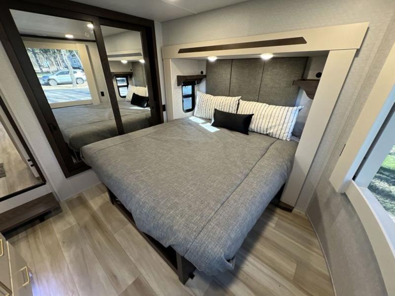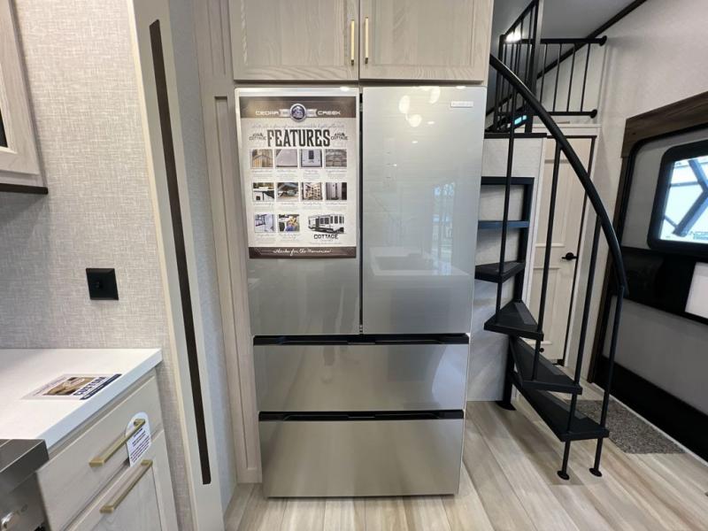 With any Cedar Creek Cottage destination trailer by Forest River, you can enjoy extended stays with residential features at the location of your choice! Each model is built with 3M bonded sidewalls that grow stronger with age and are resistant to UV, heat, oil, moisture, and more. There is also an AlphaPly TPO roof membrane, detachable entry steps, and new waterproof and bug proof Vixenite slide room floor panels for added durability. Head inside where you'll find residential dovetail, self-closing drawers, flush floor slides in the kitchen and living area, a residential style headboard and luxurious bedding decor, and extra storage for linens in the bedroom and bath. Each model is also pre-wired for satellite to the roof, and you can stay connected with the new Cradle Point WiFi/5G antenna and Day 1 connectivity.