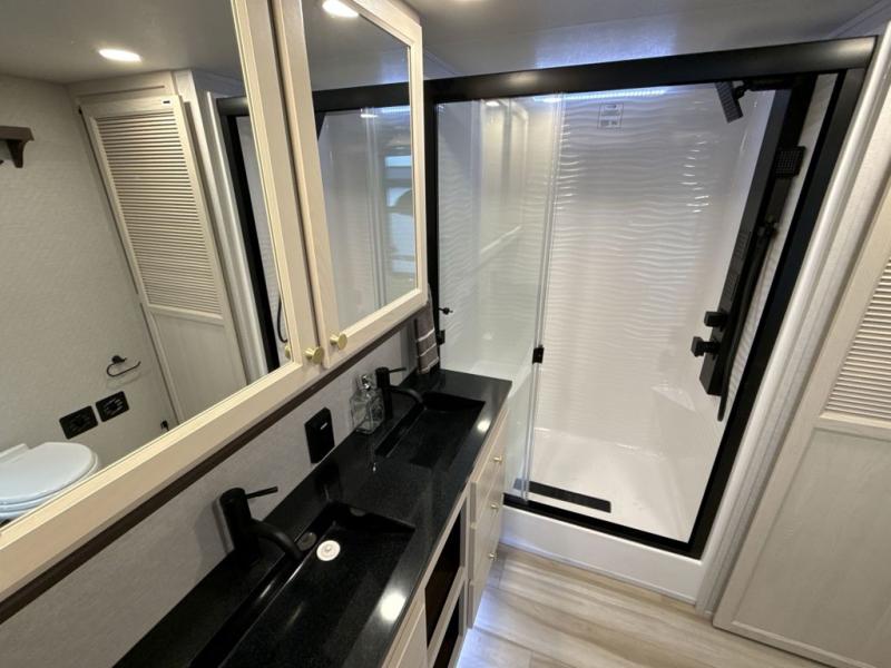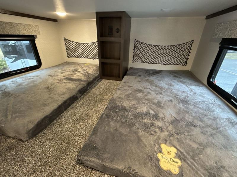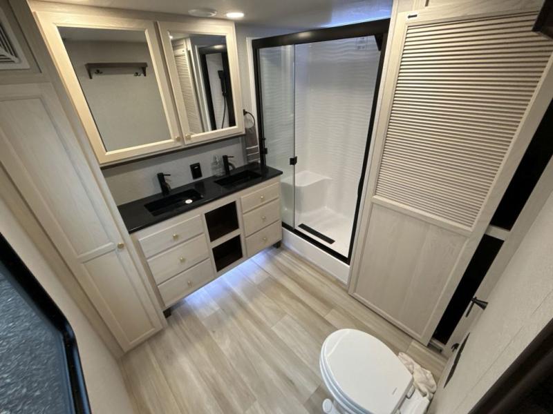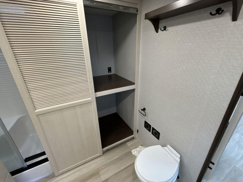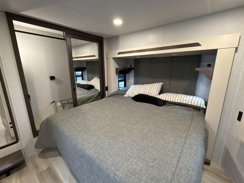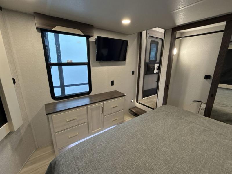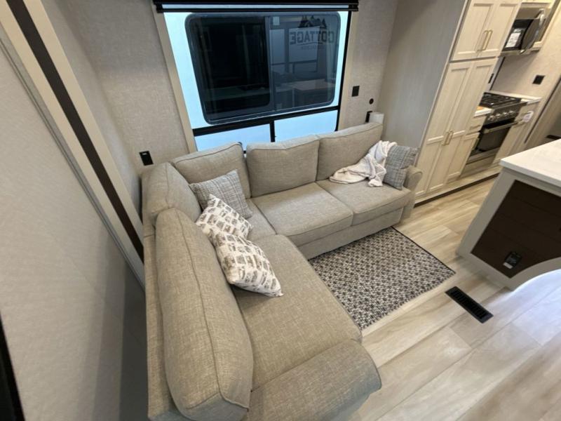 With any Cedar Creek Cottage destination trailer by Forest River, you can enjoy extended stays with residential features at the location of your choice! Each model is built with 3M bonded sidewalls that grow stronger with age and are resistant to UV, heat, oil, moisture, and more. There is also an AlphaPly TPO roof membrane, detachable entry steps, and new waterproof and bug proof Vixenite slide room floor panels for added durability. Head inside where you'll find residential dovetail, self-closing drawers, flush floor slides in the kitchen and living area, a residential style headboard and luxurious bedding decor, and extra storage for linens in the bedroom and bath. Each model is also pre-wired for satellite to the roof, and you can stay connected with the new Cradle Point WiFi/5G antenna and Day 1 connectivity.