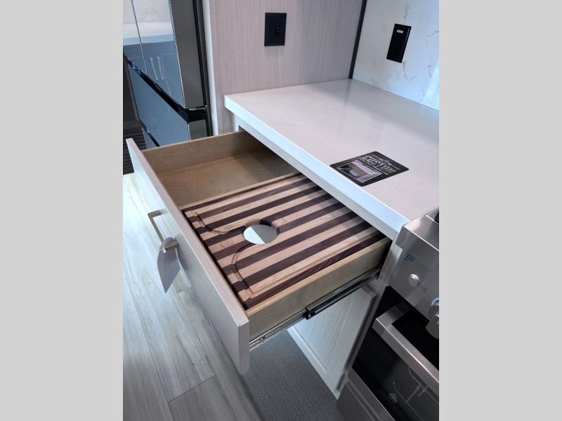 Spend some time getting to know your family a little bit better in this Cedar Creek Cottage destination trailer! You will have plenty of space to do all sorts of indoor activities with the opposing slides and king bed slide for added space, and the free-standing table with chairs has an extension that you can use if you are working on a bigger puzzle or have guests over for dinner. The kitchen features everything you need to create meals for your whole family just like at home. You will love the 20 cu. ft. 12 volt refrigerator so you can stock-up at the grocery store. The Murphy pantry also features all the space needed to store many treats, and you can add an optional dishwasher to help you clean up much faster.