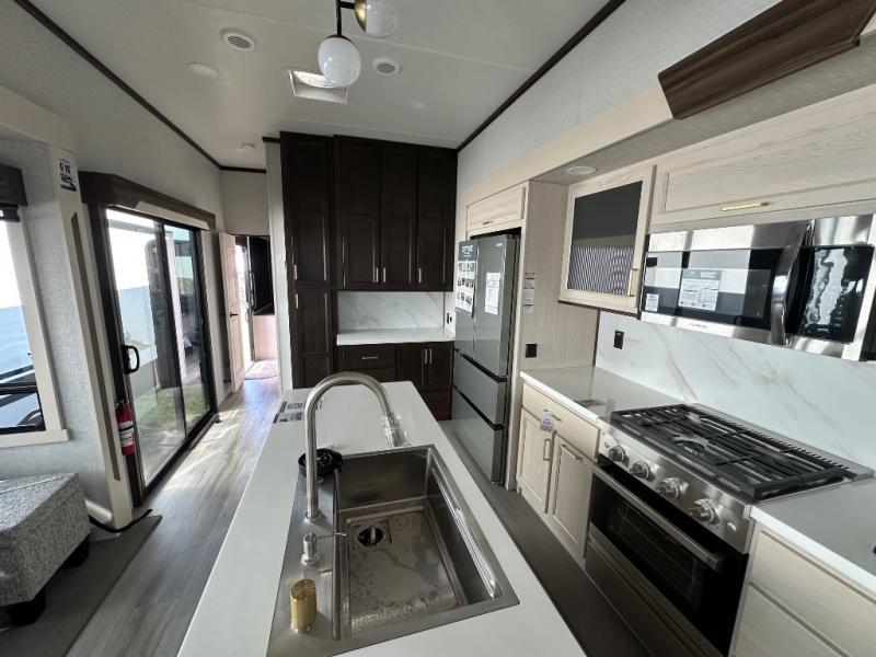 Spend some time getting to know your family a little bit better in this Cedar Creek Cottage destination trailer! You will have plenty of space to do all sorts of indoor activities with the opposing slides and king bed slide for added space, and the free-standing table with chairs has an extension that you can use if you are working on a bigger puzzle or have guests over for dinner. The kitchen features everything you need to create meals for your whole family just like at home. You will love the 18 cu. ft. 12 volt refrigerator so you can stock-up at the grocery store. The Murphy pantry also features all the space needed to store many treats, and you can add an optional dishwasher to help you clean up much faster.